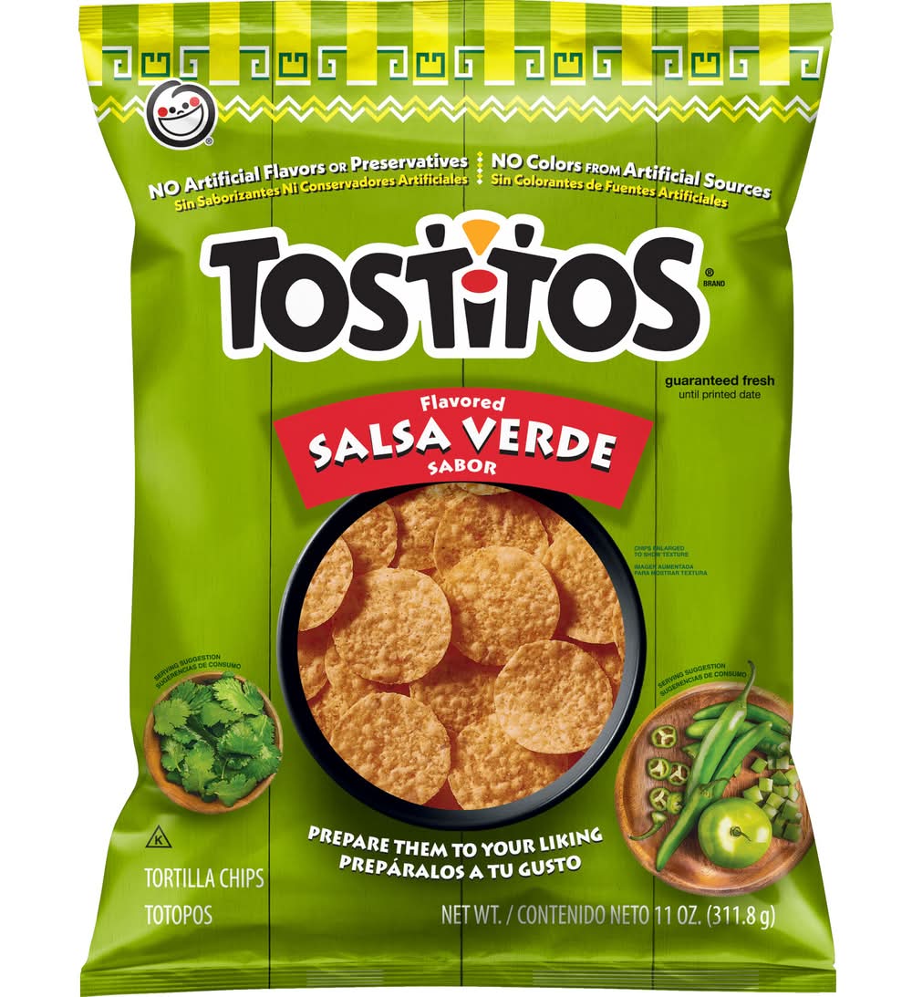 TOSTITOS tortilla chips and dips are the life of the party. Whether you're watching the game with friends or throwing a giant backyard barbecue, TOSTITOS has the must-have chips and dips to pump up the fun! Flavor: Salsa verde