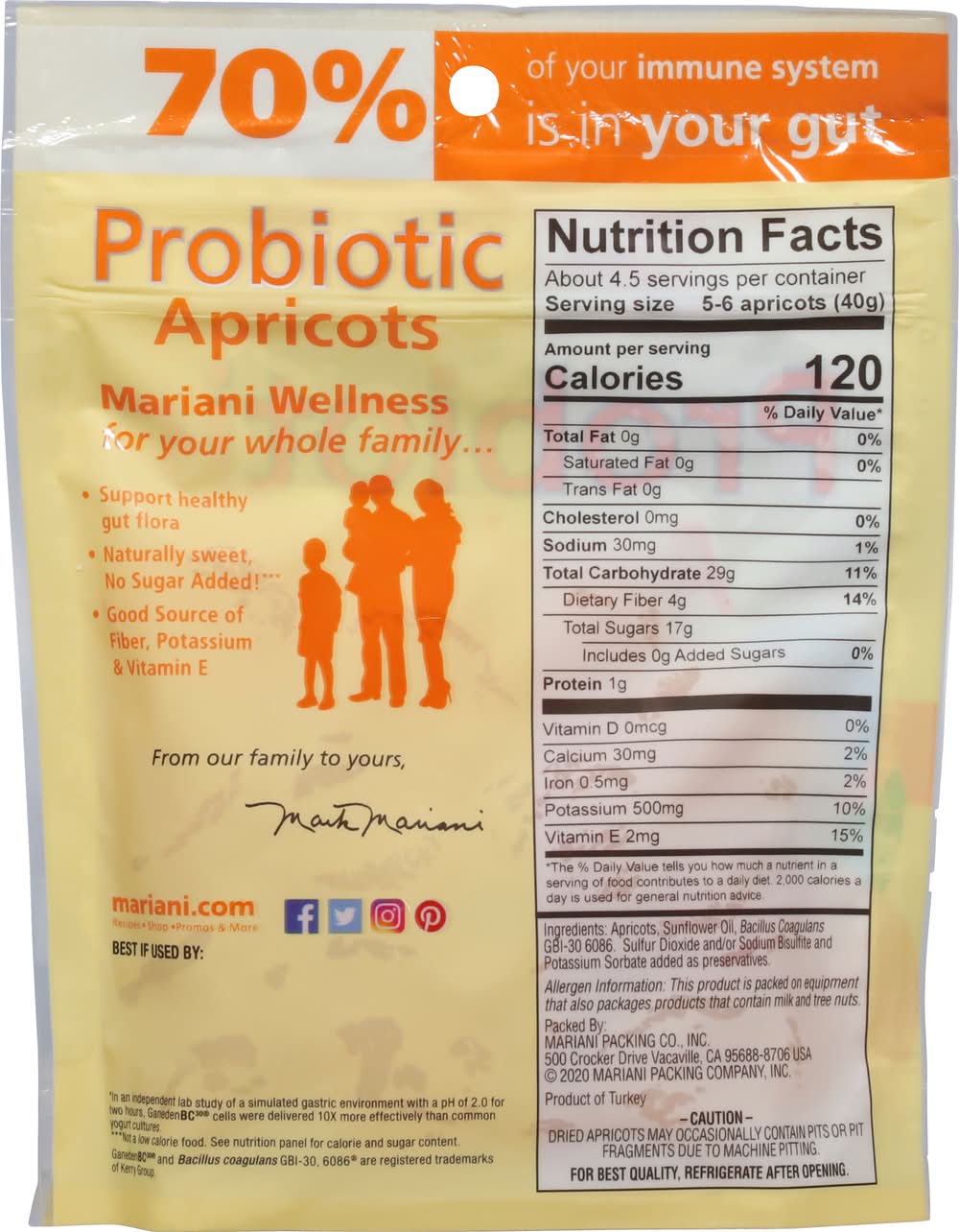 Apricots, Probiotic Mariani Packing, 500 Crocker Drive, Vacaville, CA