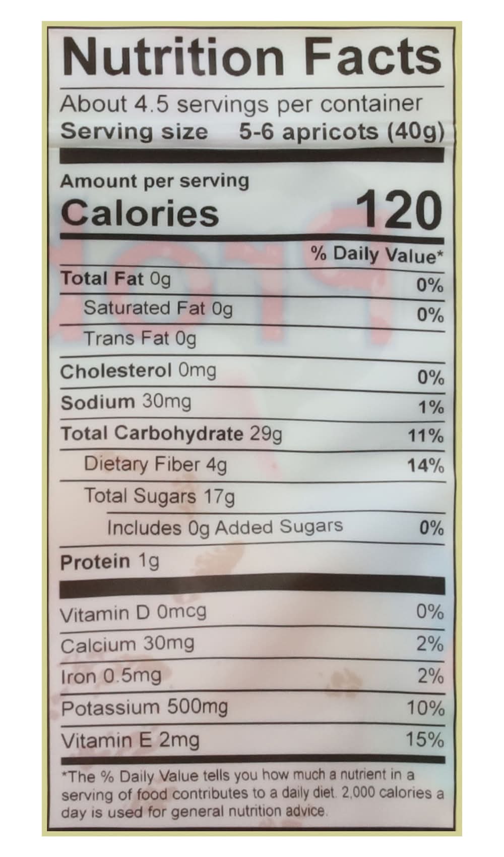 Ingredients: Dried Apricots, Sunflower Oil, Bacillus Coagulans GBI-30 6086. Sulfur Dioxide and/or Sodium Bisulfite Added as Preservatives Contains: Sulfites, Milk, Tree Nuts