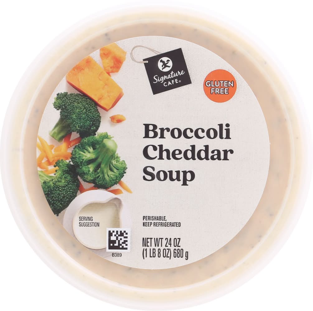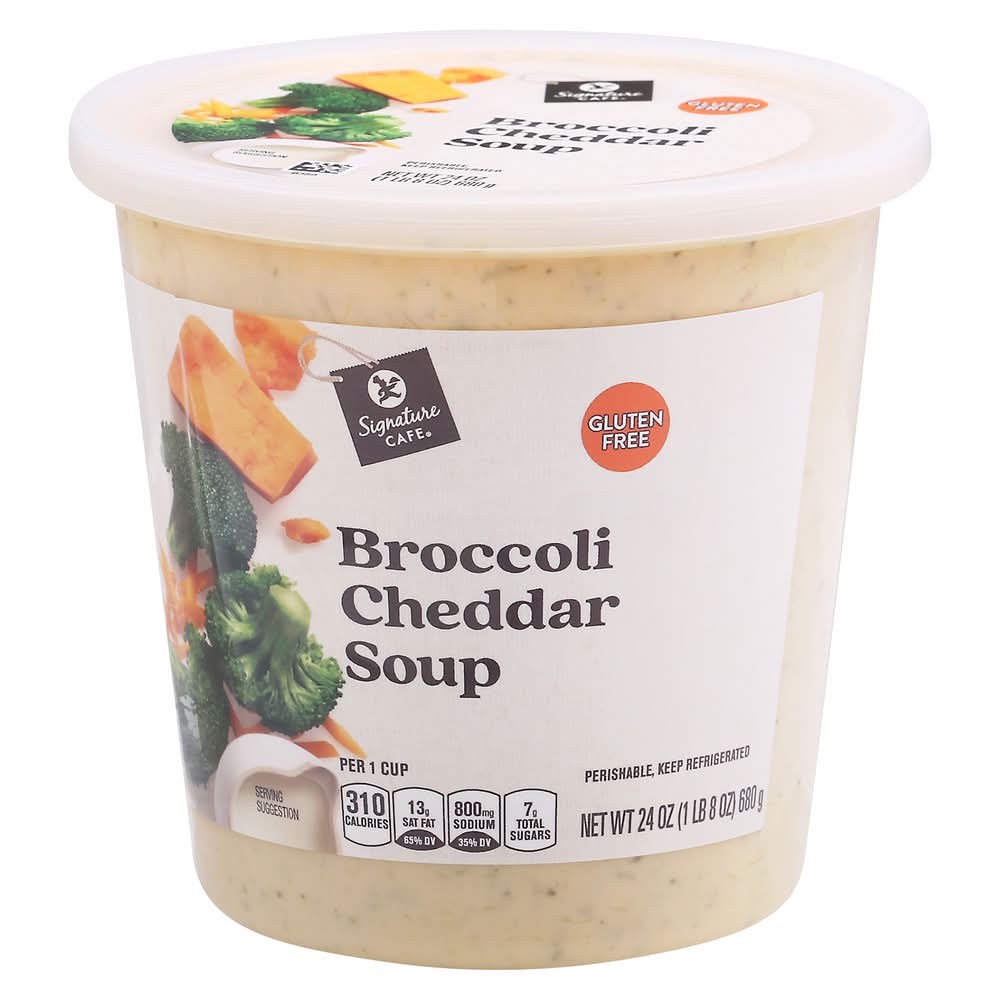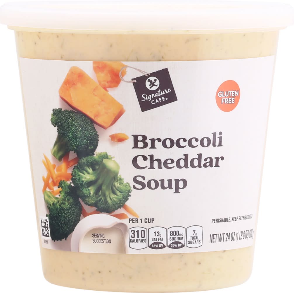 Ingredients: Milk (Milk, Vitamin D), Water, Light Cream, Broccoli, Cheddar Cheese (Pasteurized Milk, Cheese Culture, Salt, Enzymes), Modified Corn Starch, Contains 2% or Less of: Onions, Butter (Cream, Salt), Cultured Dextrose, Natural Parmesan Reggiano Type Flavor (Cheese [Pasteurized Milk, Cultures, Salt, Enzymes), Water, Salt, Nonfat Dry Milk, Milkfat, Disodium Phosphate), Organic Soy Sauce (Water, Organic Soybeans, Salt, Organic Alcohol), Garlic, Whey Protein Concentrate, Whey, Skim Milk, Sodium Citrate, Milkfat, Yeast Extract, Dehydrated Onion, Lactic Acid, Oleoresin Paprika & Annatto (for Color), Salt and Spice. Contains: Milk, Soybeans