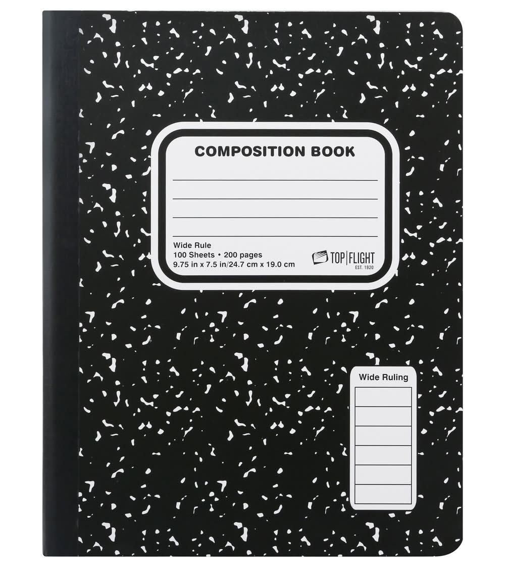 Composition Book, Wide Rule • Color: Black-white • Size: