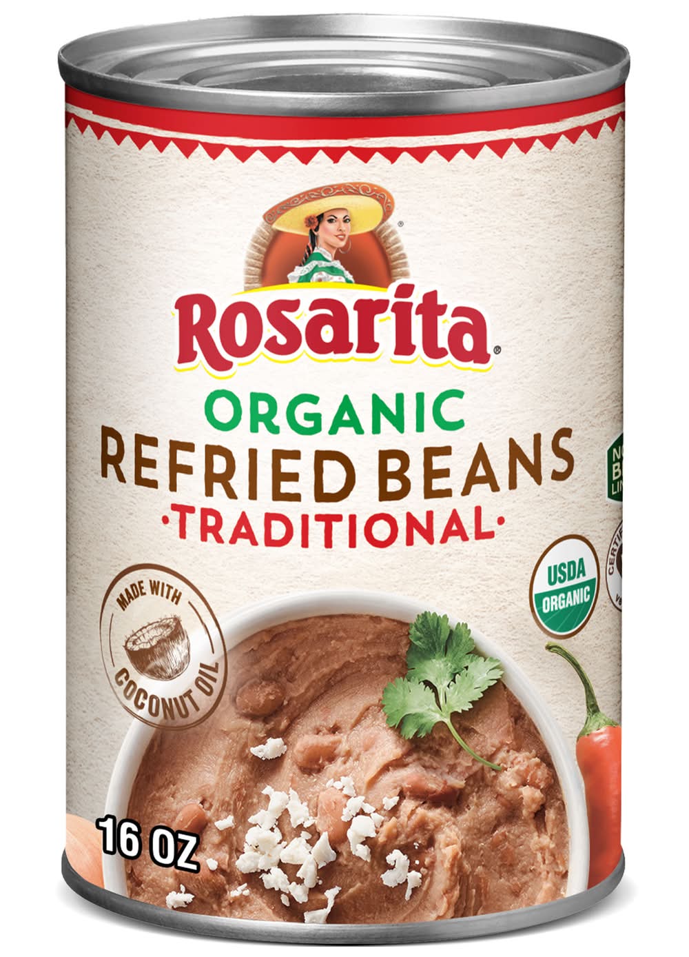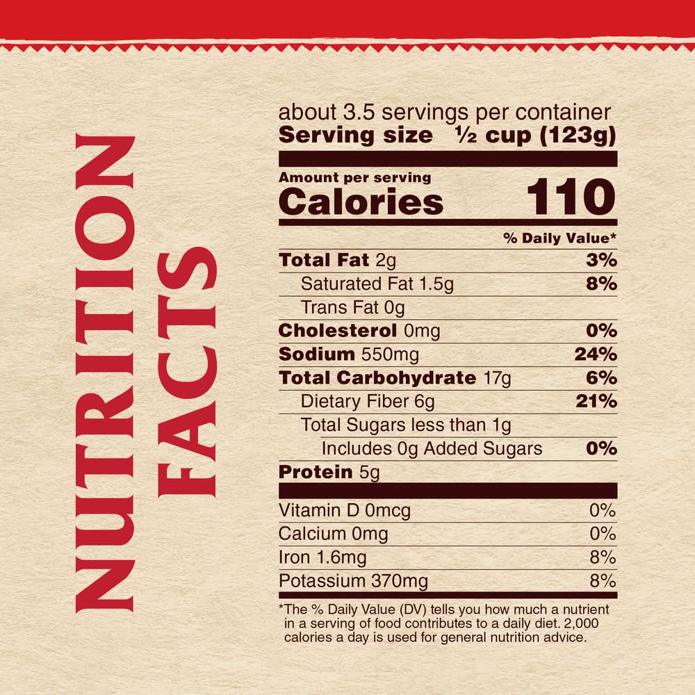 It offer a flavorful blend of fiber-rich pinto beans prepared with organic coconut oil. Each half-cup serving contains 110 calories, 1.5 grams of saturated fat, 550 milligrams of sodium, and less than 1 gram of total sugars. The product is USDA Organic and certified vegan, ensuring adherence to specific organic and vegan guidelines. It is packaged in a non-BPA liner to address consumer health and safety concerns. • Conagra Brands, P.O. Box 3534, Dept. Ros, Chicago, IL, 60654 • Packaging: Reusable