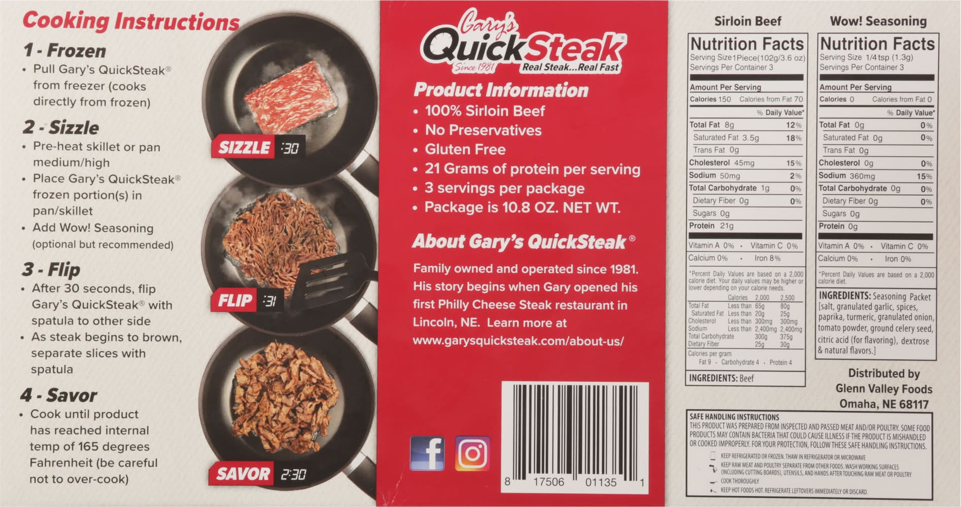 Gary's Quick Steak 100% Sirloin Beef (10.8 oz)