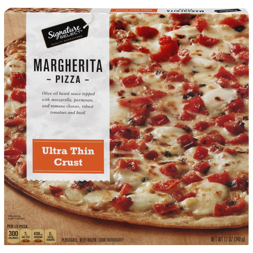 Olive oil based sauce topped with mozzarella, parmesan, and romano cheeses, robust tomatoes and basil. Our Signature is our promise. Signature Select is your assurance of great quality products at the best value everyday, from delicious frozen entrees and freshly baked French bread to home essentials. • Number of servings: 3 • Packaging: Reusable