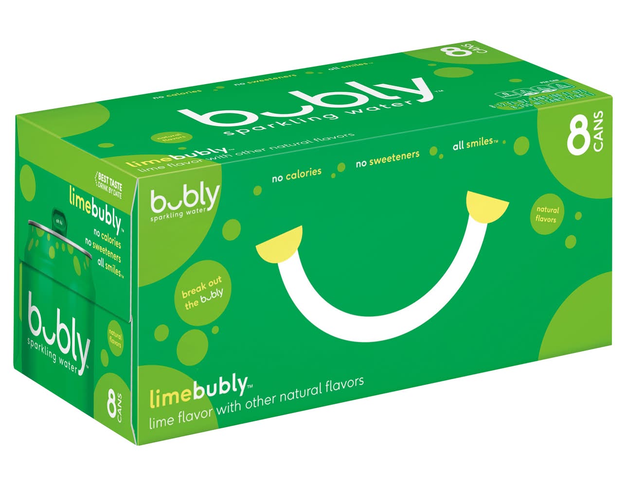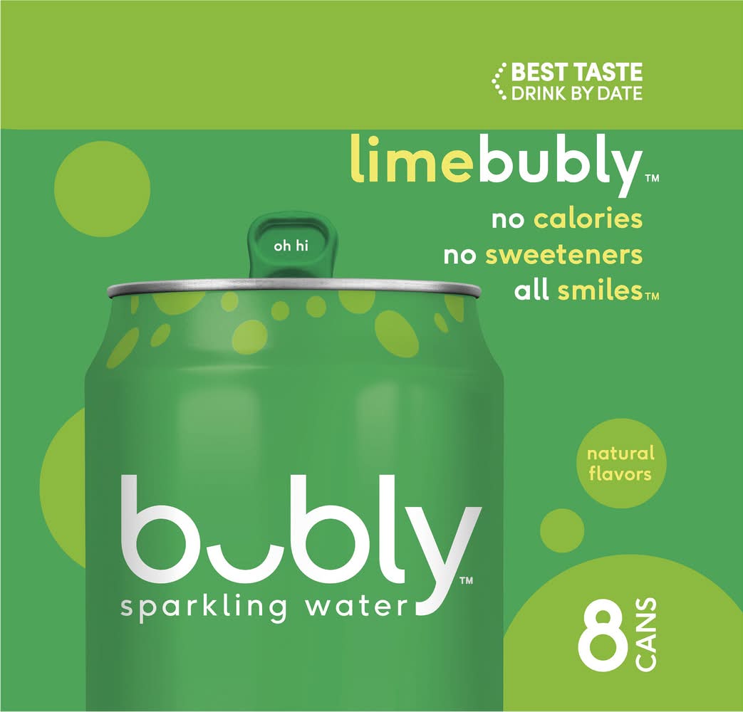 Oh hi! bubly sparkling water combines refreshing, crisp sparkling water with great tasting, natural flavors perfect for any occasion. No calories, no sweeteners, all smiles. • Flavor: Lime • Pack size: 8 • Packaging: Reusable