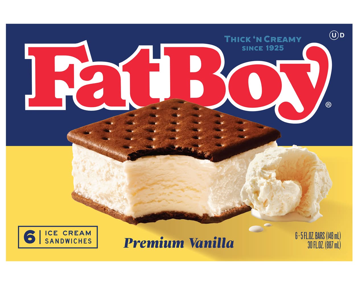 FatBoy Premium Ice Cream Sandwiches, Vanilla (6 x 5 fl oz)