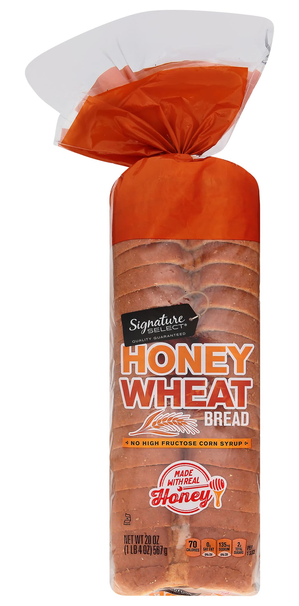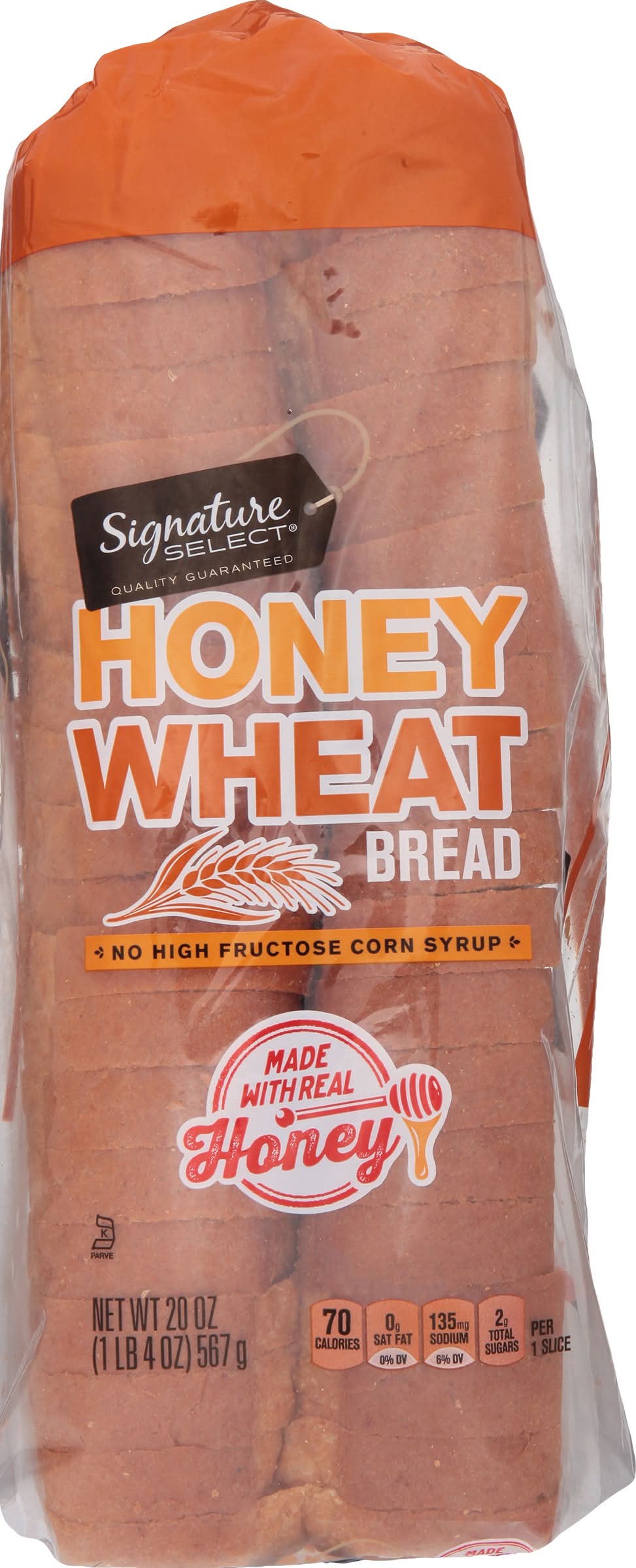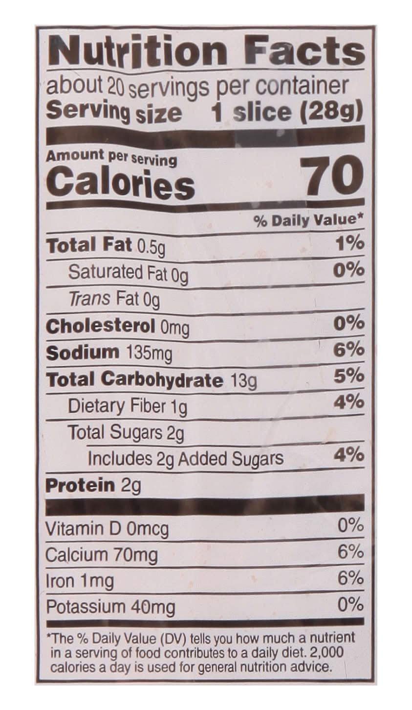 Ingredients: Unbleached Enriched Flour (Wheat Flour, Malted Barley Flour, Niacin Reduced Iron, Thiamine Mononitrate, Riboflavin, Folic Acid), Water, Yeast, Whole Wheat Flour, Honey Liquid Sugar, Wheat Bran, Molasses, Highly Refined Soybean Oil and/or Canola Oil, Wheat Gluten, Sea Salt Calcium Sulfate, Contains 2% or Less of: Dough Conditioners (May Contain One or More of: Sodium Stearoyl Lactylate, Ethoxylated Mono-and Diglycerides, Monocalcium Phosphate, Calcium Sulfate, Ascorbic Acid), Calcium Propionate and Sorbic Acid (10 Retard Spoilage), Mono-and Diglycerides, Sodium Stearoyl Lactylate, Vinegar, Distilled Monoglycerides, Sucralose, Corn Starch Acesulfame Potassium, Ascorbic Acid, Enzymes. Contains: Wheat, Soybeans, Gluten