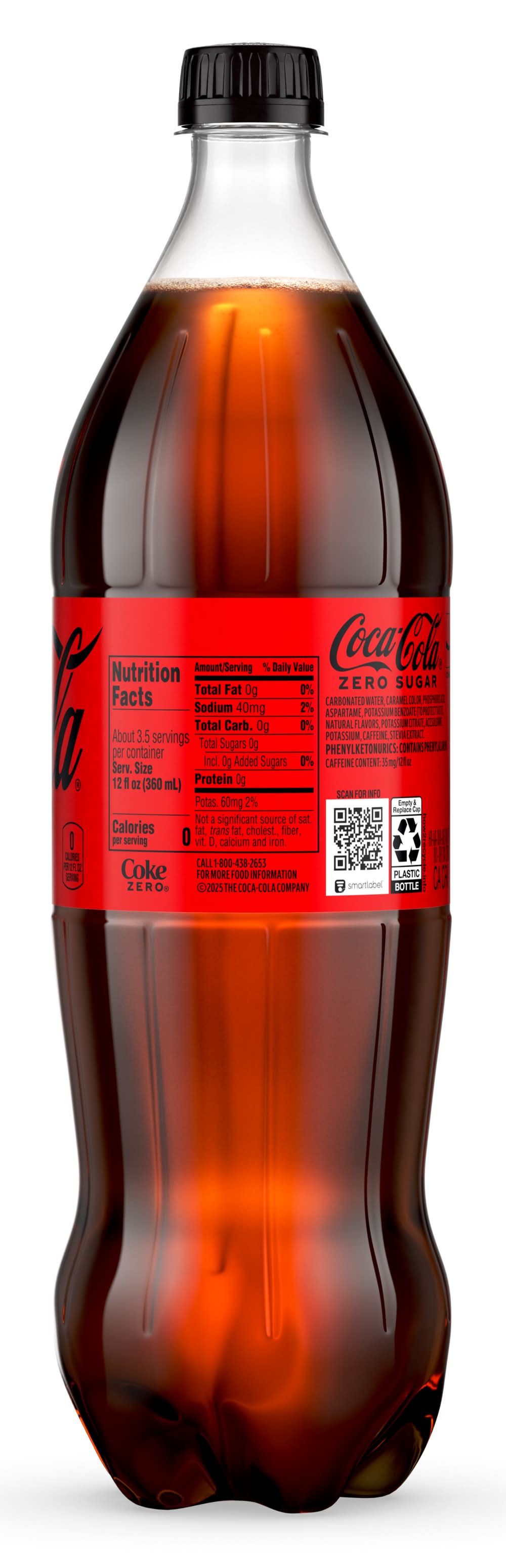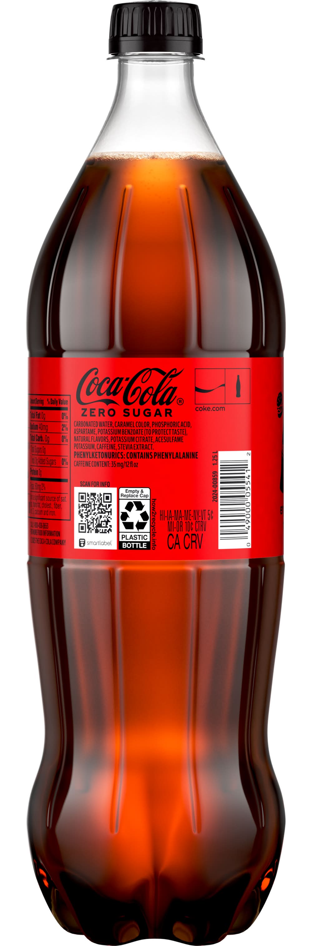 Ingredients: Carbonated Water, Caramel Color, Phosphoric Acid, Aspartame, Potassium Benzoate (To Protect Taste), Natural Flavors, Potassium Citrate, Acesulfame Potassium, Caffeine, Stevia Extract.