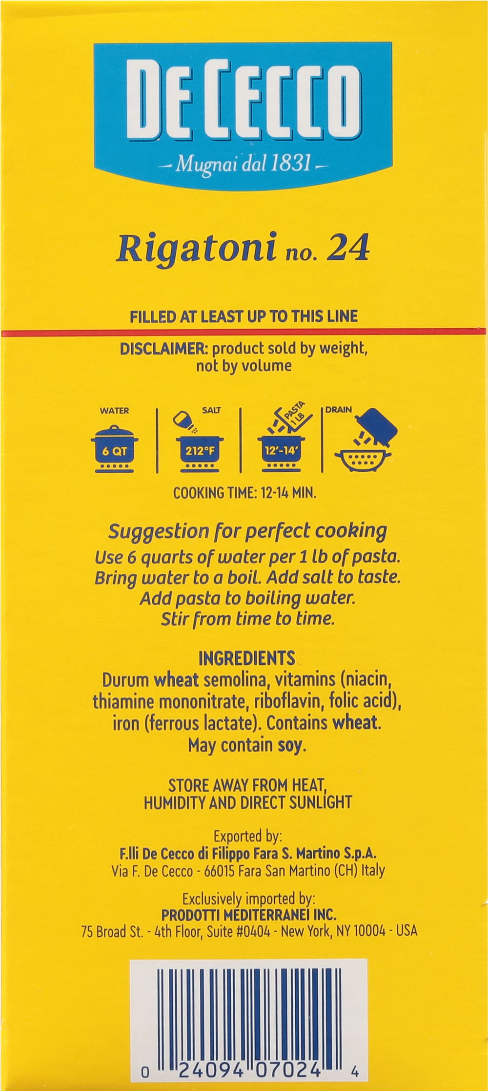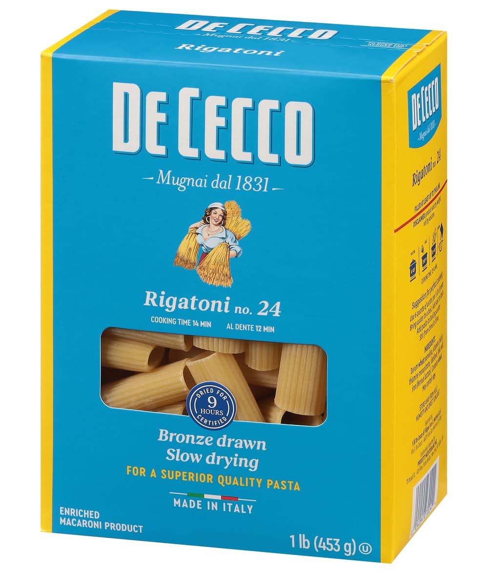 De Cecco Rigatoni No. 24 Broze Drawn Slow Drying Pasta (1 lbs)
