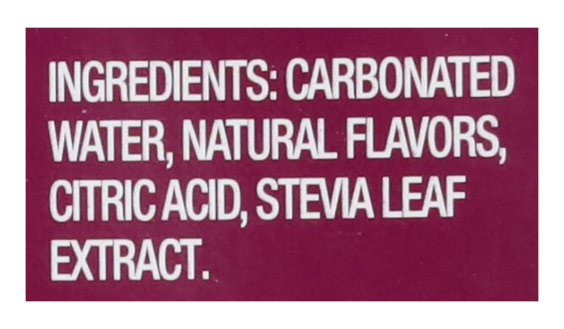 Ingredients: Carbonated Water, Natural Flavors, Citric Acid, Stevia Leaf Extract