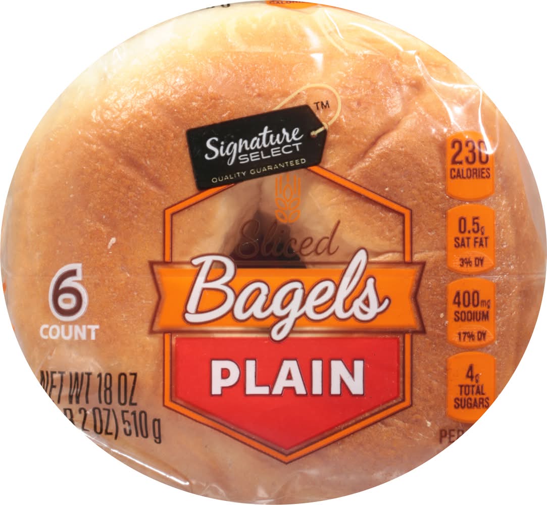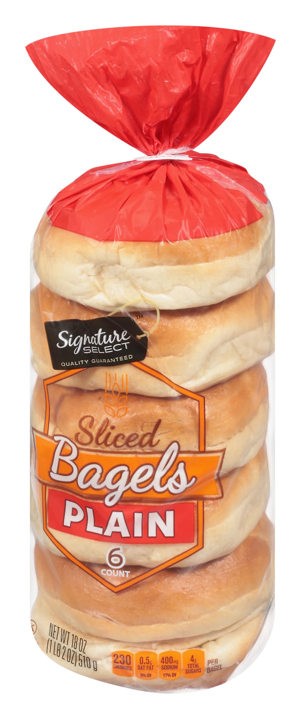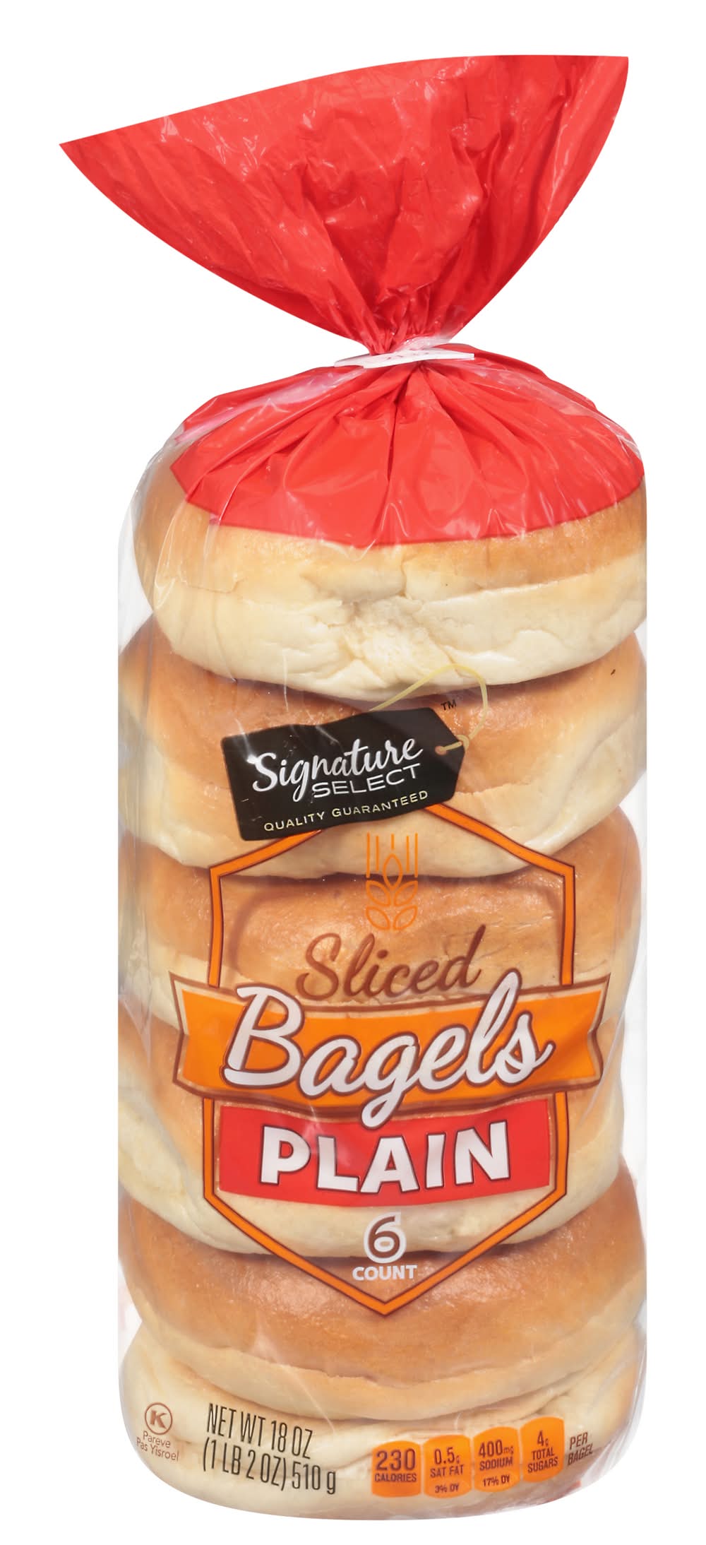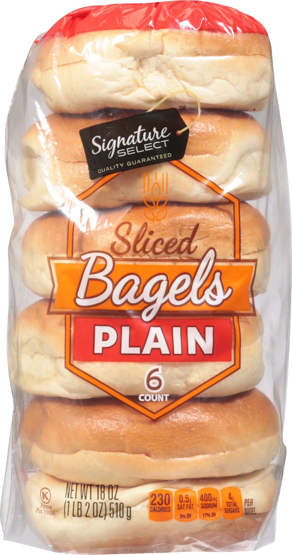 Signature Select Sliced Plain Bagels (18 oz, 6 ct)