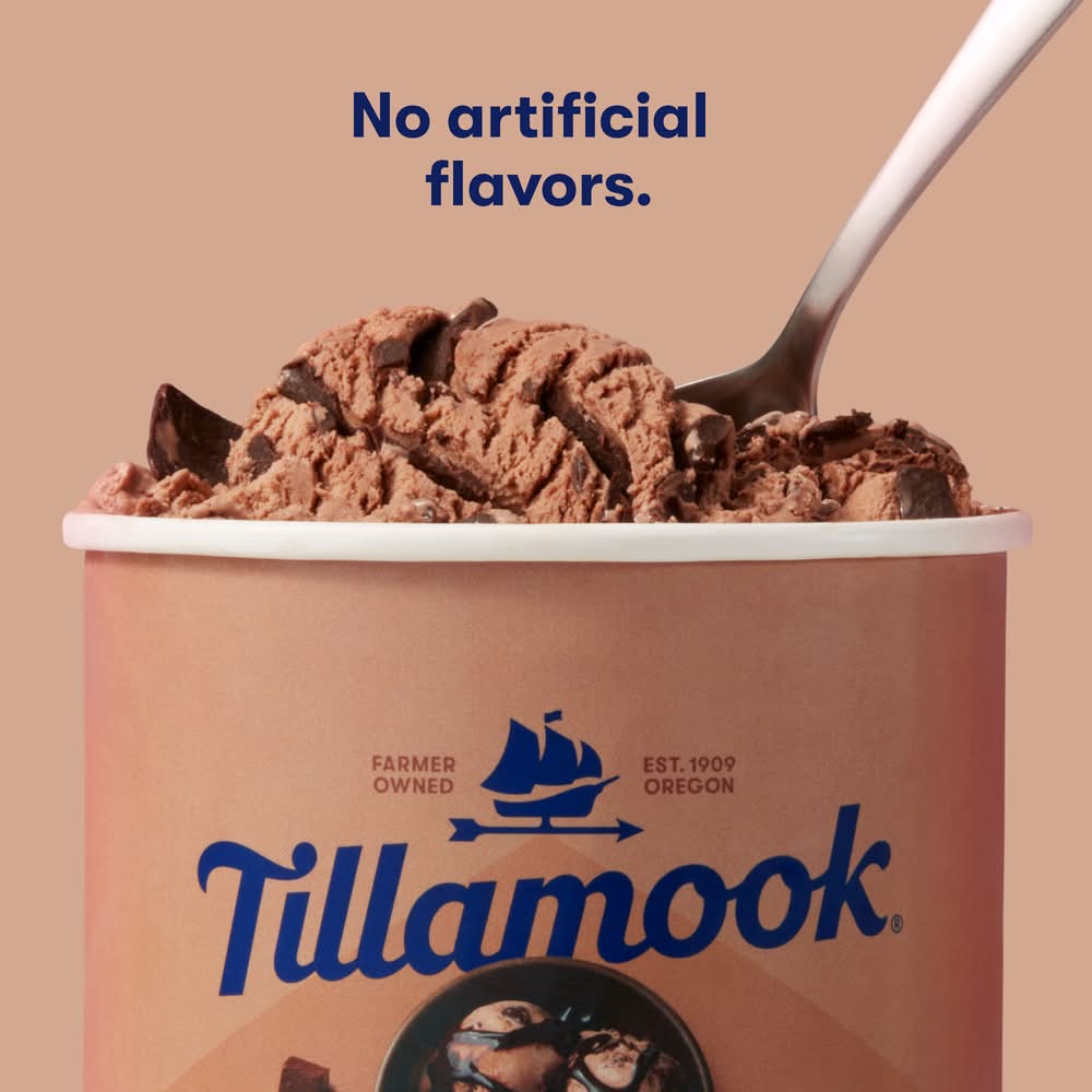 Smooth chocolate ice cream with a ribbon of rich fudge and chocolaty chips. Same great taste! Farmer owned. Est. 1909 Oregon. From cows not treated with rBST (All farmers who supply milk for Tillamook products pledge not to use artificial growth hormones. The FDA has stated that no significant difference has been shown between milk derived from rBST treated and non-rBST treated cows). Really creamy ice cream. We know what it takes to make ice cream you can't stop thinking about. It's going all in on everything you crave most: a whole lotta cream, the very best ingredients and 100+ years of crafting dairy deliciousness. Made in the USA. Tillamook County Creamery Association, Tillamook,OR,97141