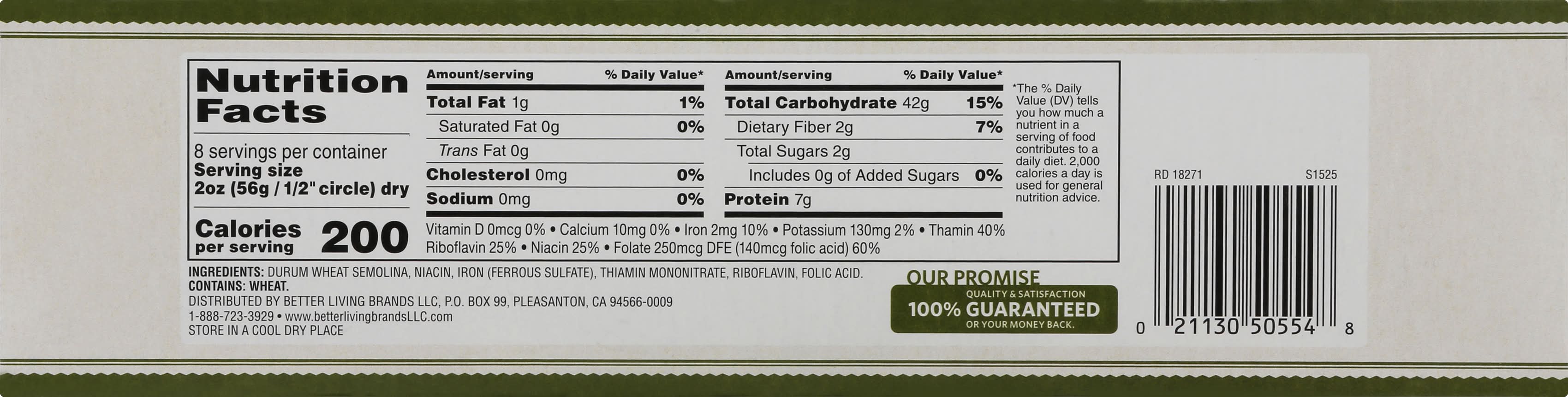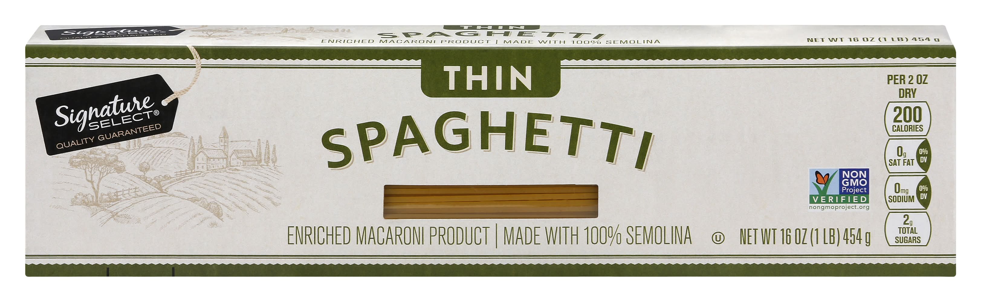 Signature select is your assurance of great quality products at the best value every day. We create our pastas and noodles with only the finest ingredients. • Number of servings: 8 • Better Living Brands LLC, Pleasanton, CA, 94566-0009.