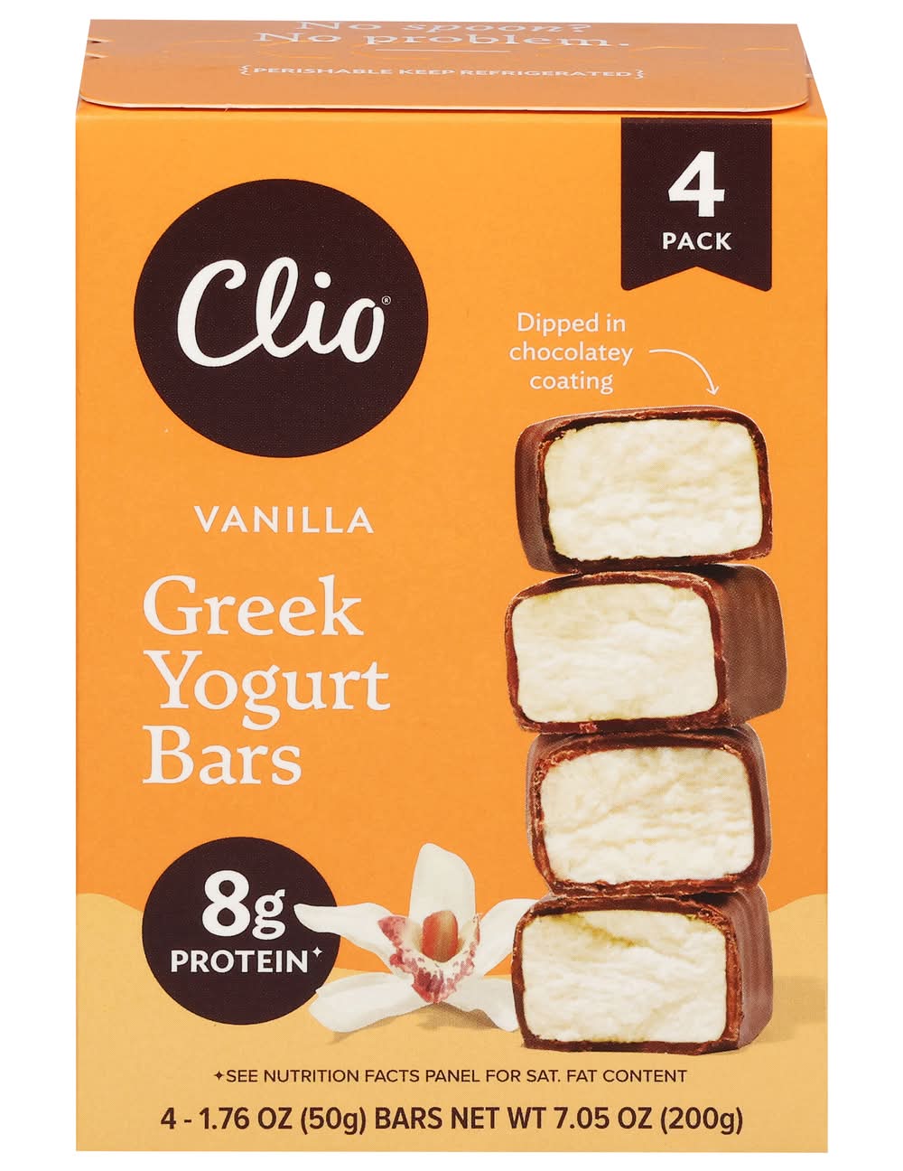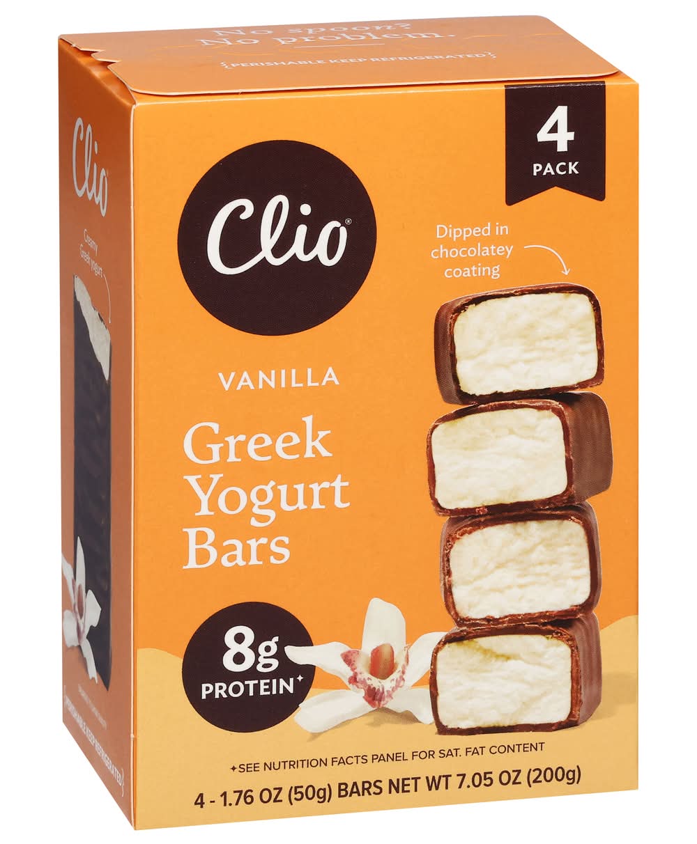 Clio Chocolatey Coated Greek Yogurt Bars, Vanilla (4 x 1.76 oz)