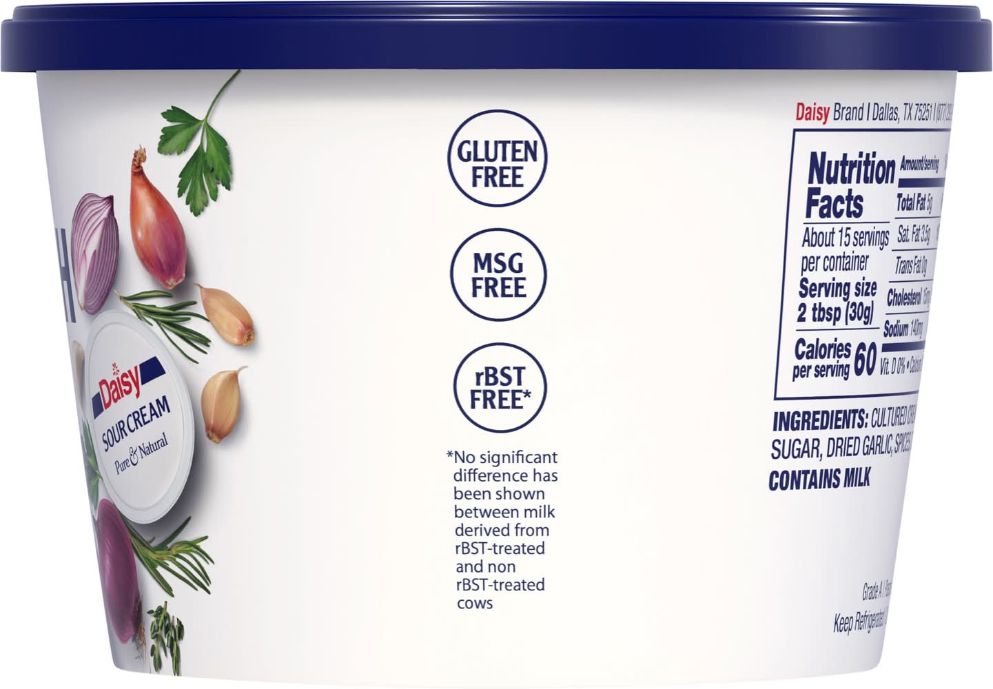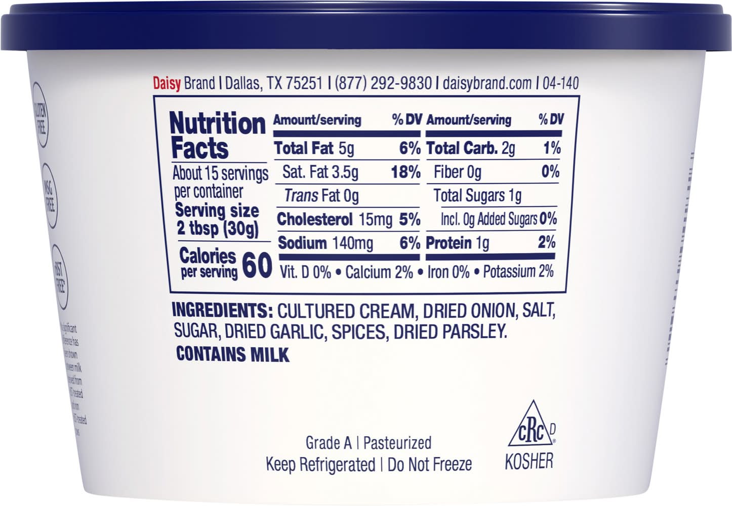 Ingredients: Cultured Cream, Dried Onion, Salt, Sugar, Dried Garlic, Spices, Dried Parsley Contains: Milk
