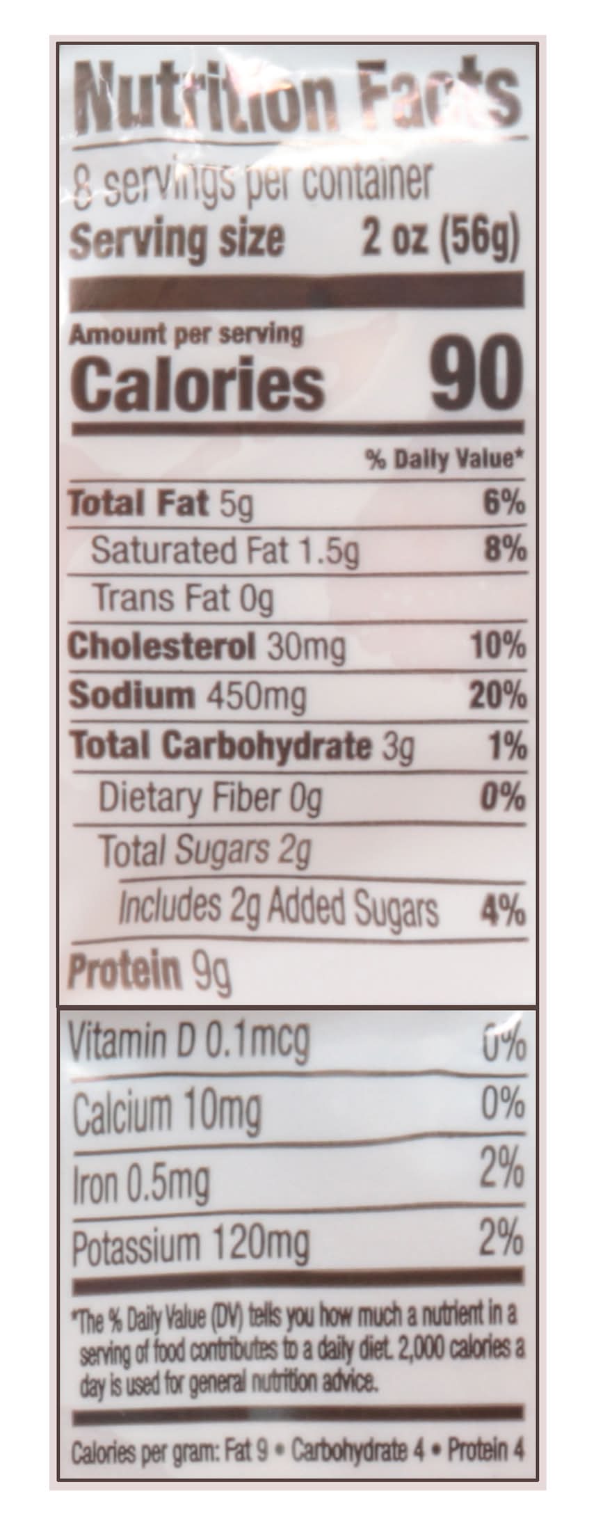 Delicately thin sliced, providing a savory choice for those seeking a flavorful addition to sandwiches, salads, or charcuterie boards. its taste offers a subtle sweetness, perfectly complementing the ready to eat slices. • Number of servings: 8 • Better Living Brands Llc, Pleasanton, CA.