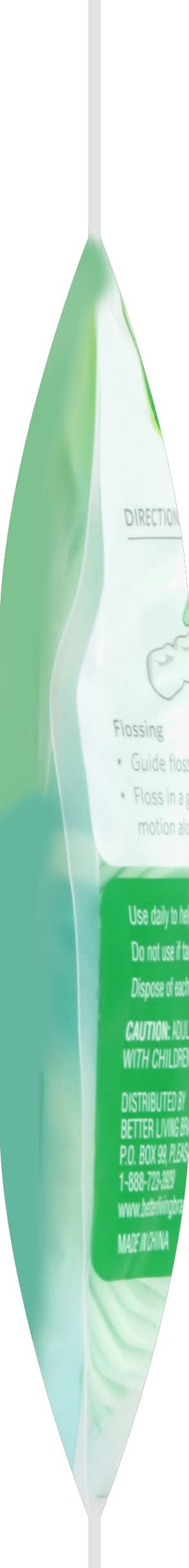 Directions for use: flossing: guide floss between teeth. floss in a gentle back and forth, up and down motion alongside each tooth. gum stimulator and pick: guide pick into space between teeth. gently use in and out motion to clean teeth and stimulate gums. use daily to help reduce plaque buildup and the risk of gingivitis. dispose of each flosser after use.