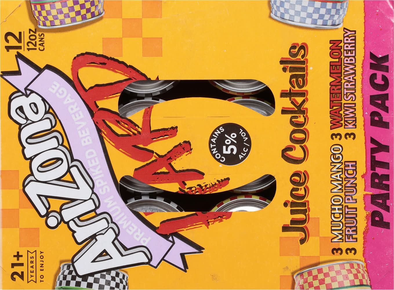 Variety Pack offers a selection of flavored malt beverages. Flavors include Mucho Mango, Fruit Punch, and Watermelon. providing a diverse tasting experience. • Flavor: Assorted • Pack size: 12 • Alcohol by volume: 5%