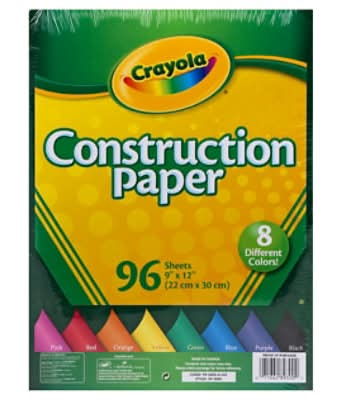 Crayola Construction Paper, 9 In*12 In, Assorted (1.05 lbs, 96 ct)