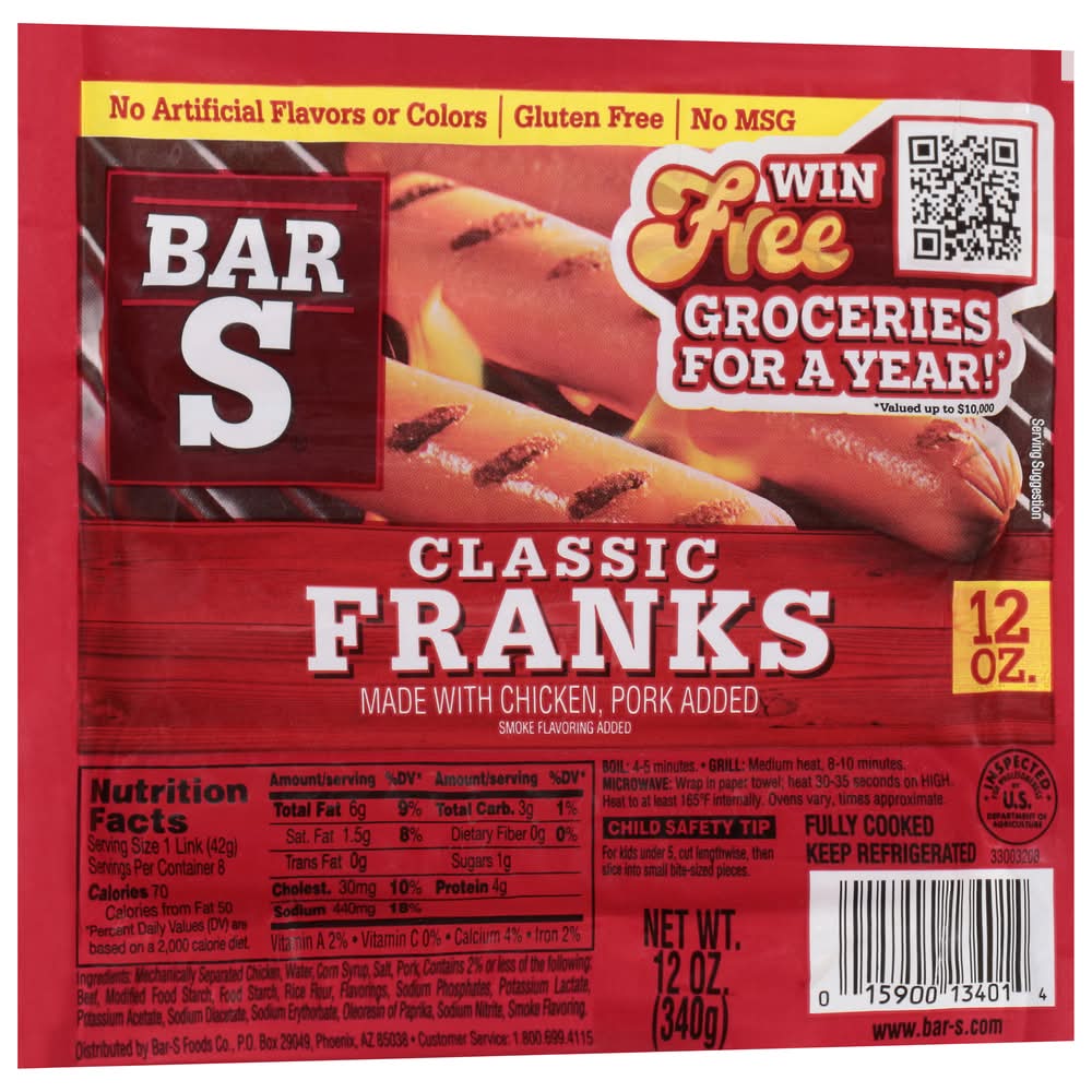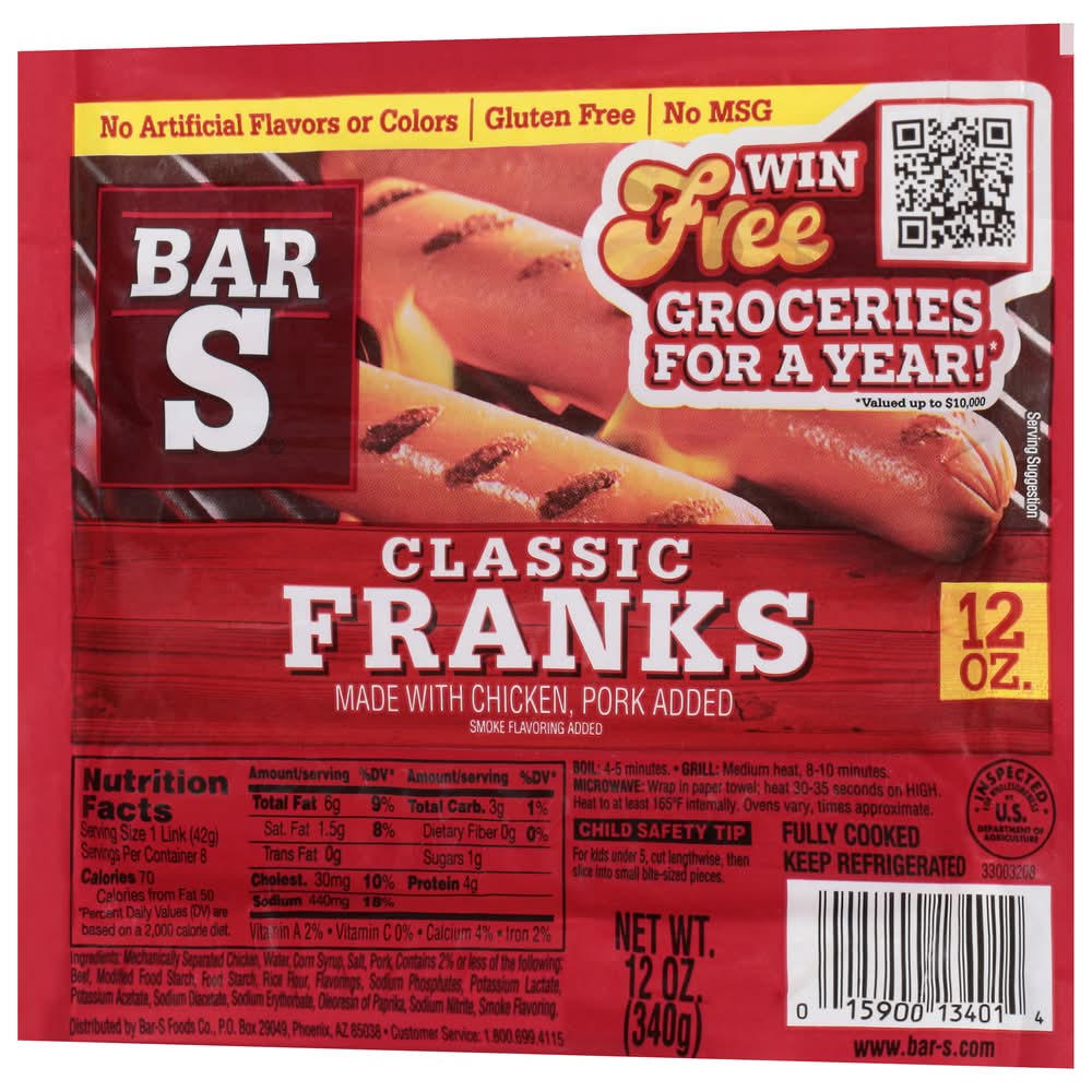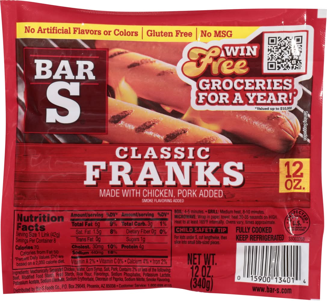 Classic Franks • Flavor: Smoke • Bar s Foods, PO Box 29049 Phoenix, AZ 85038