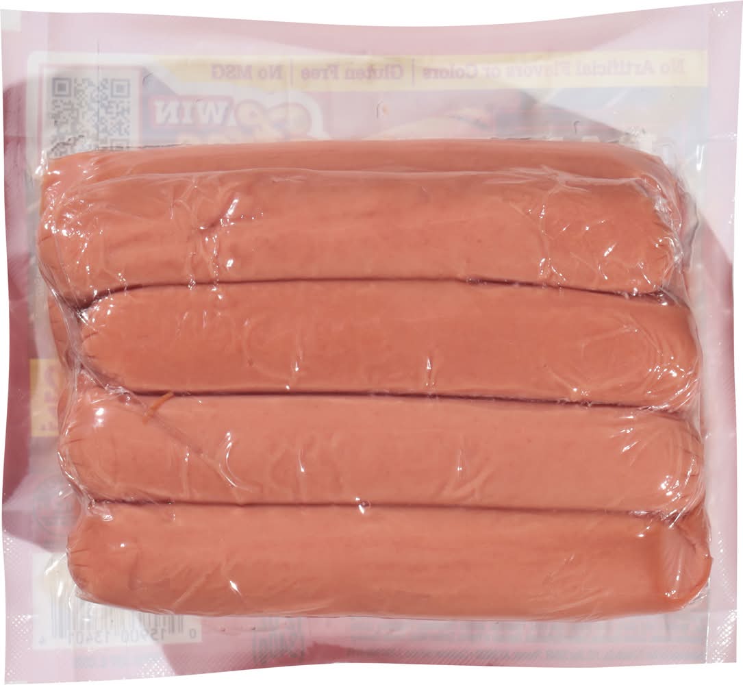 Ingredients: Mechanically Separated Chicken, Water, Corn Syrup, Salt, Pork, Contains 2% or Less of the Following: Beef, Modified Food Starch, Food Starch, Rice Flour, Flavorings, Sodium Phosphates, Potassium Lactate, Potassium Acetate, Sodium Diacetate, Sodium Erythorbate, Oleoresin of Paprika, Sodium Nitrite, Smoke Flavoring