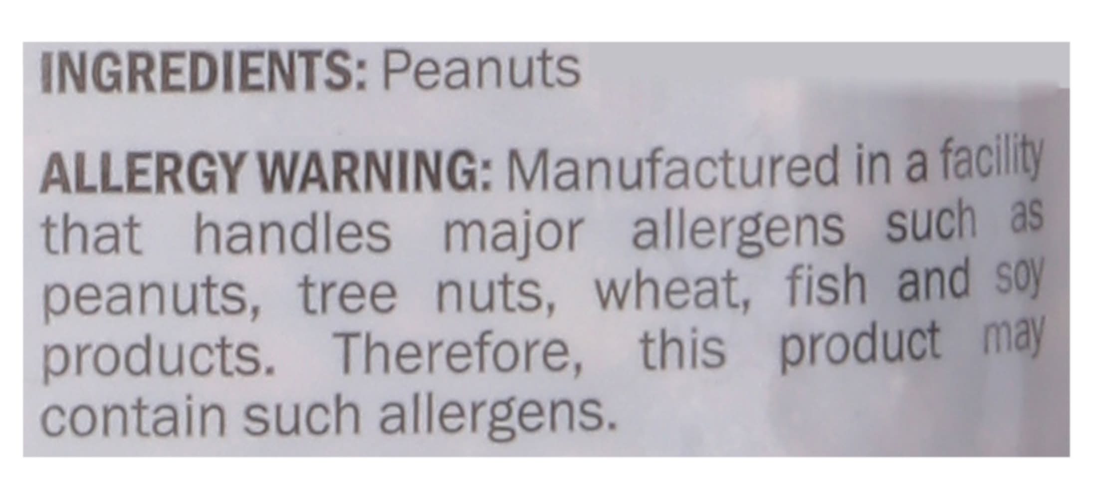 Ingredients: Peanuts Contains: Peanuts, Peanuts, Tree Nuts, Wheat, Fish, Soybeans