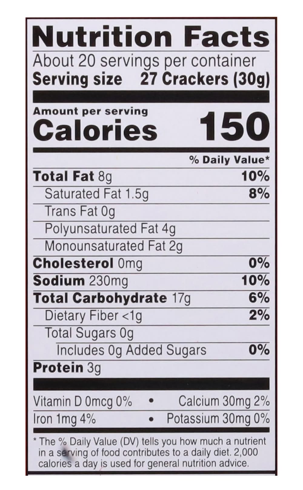 Ingredients: Enriched Flour (Wheat Flour, Niacin, Reduced Iron, Vitamin B1 [Thiamin Mononitrate], Vitamin B2 [Riboflavin], Folic Acid), Vegetable Oil (High Oleic Soybean, Soybean, Palm, and/or Canola Oil with TBHQ for Freshness), Cheese Made with Skim Milk (Skim Milk, Whey Protein, Salt, Cheese Cultures, Enzymes, Annatto Extract Color), Contains 2% or Less of Salt, Dextrose, Paprika, Yeast, Paprika Extract Color, Soy Lecithin Contains: Wheat, Milk, Soybeans
