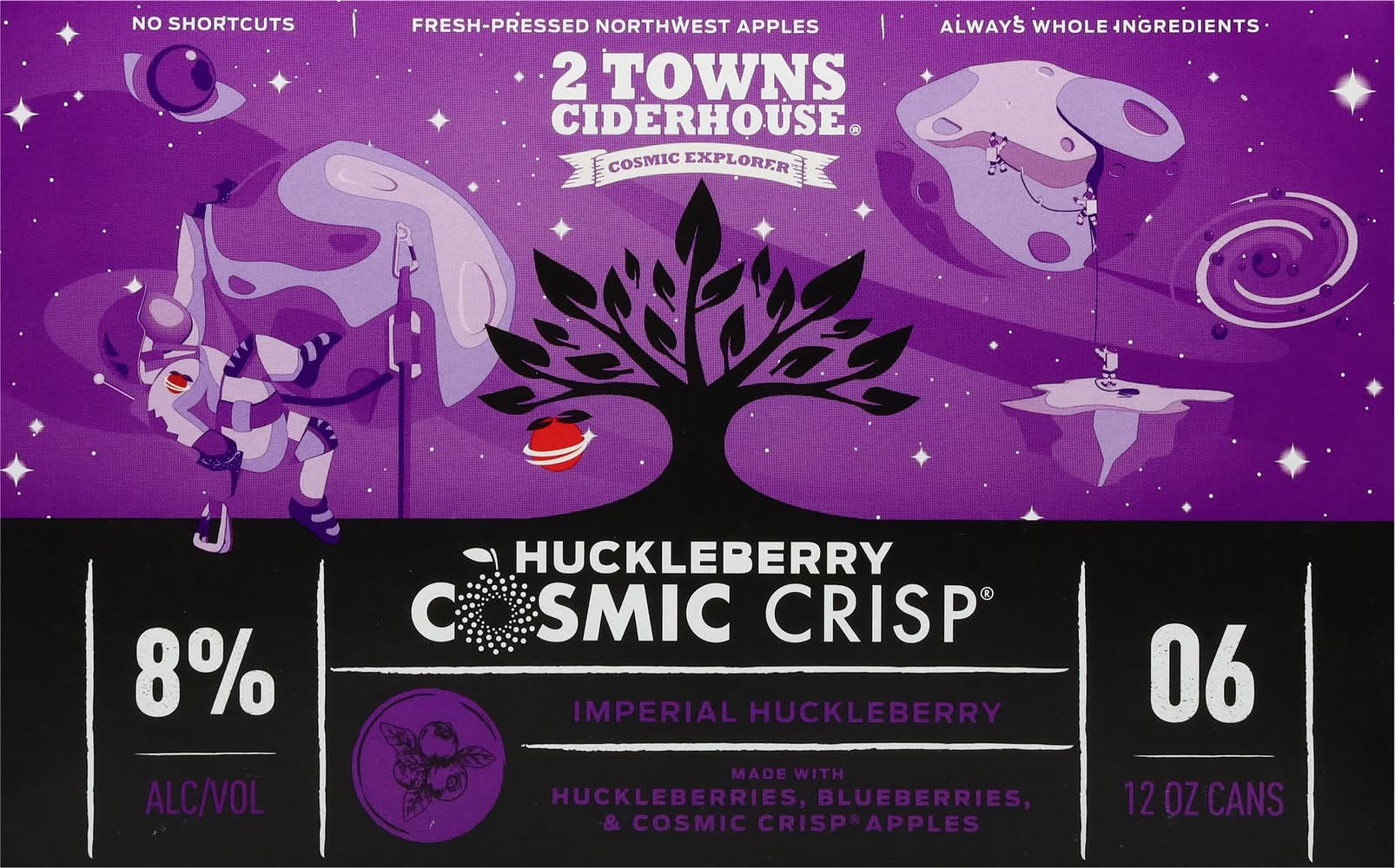 2 Towns Ciderhouse Cosmic Crisp Cider, Blueberry (6 x 12 oz)