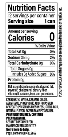 Ingredients: Carbonated Water, Caramel Color, Aspartame, Phosphoric Acid, Potassium Benzoate (Preserves Freshness), Citric Acid, Natural Flavor, Acesulfame Potassium. PHENYLKETONURICS: CONTAINS PHENYLALANINE