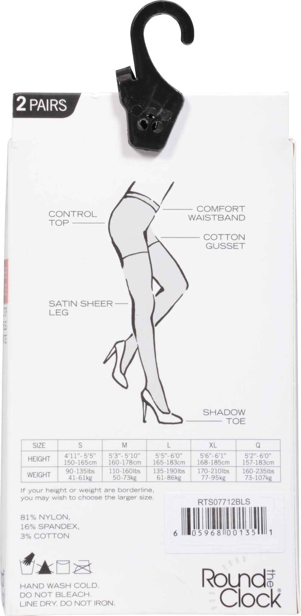 Round the Clock Women Satin Sheer Pantyhose, S, Black