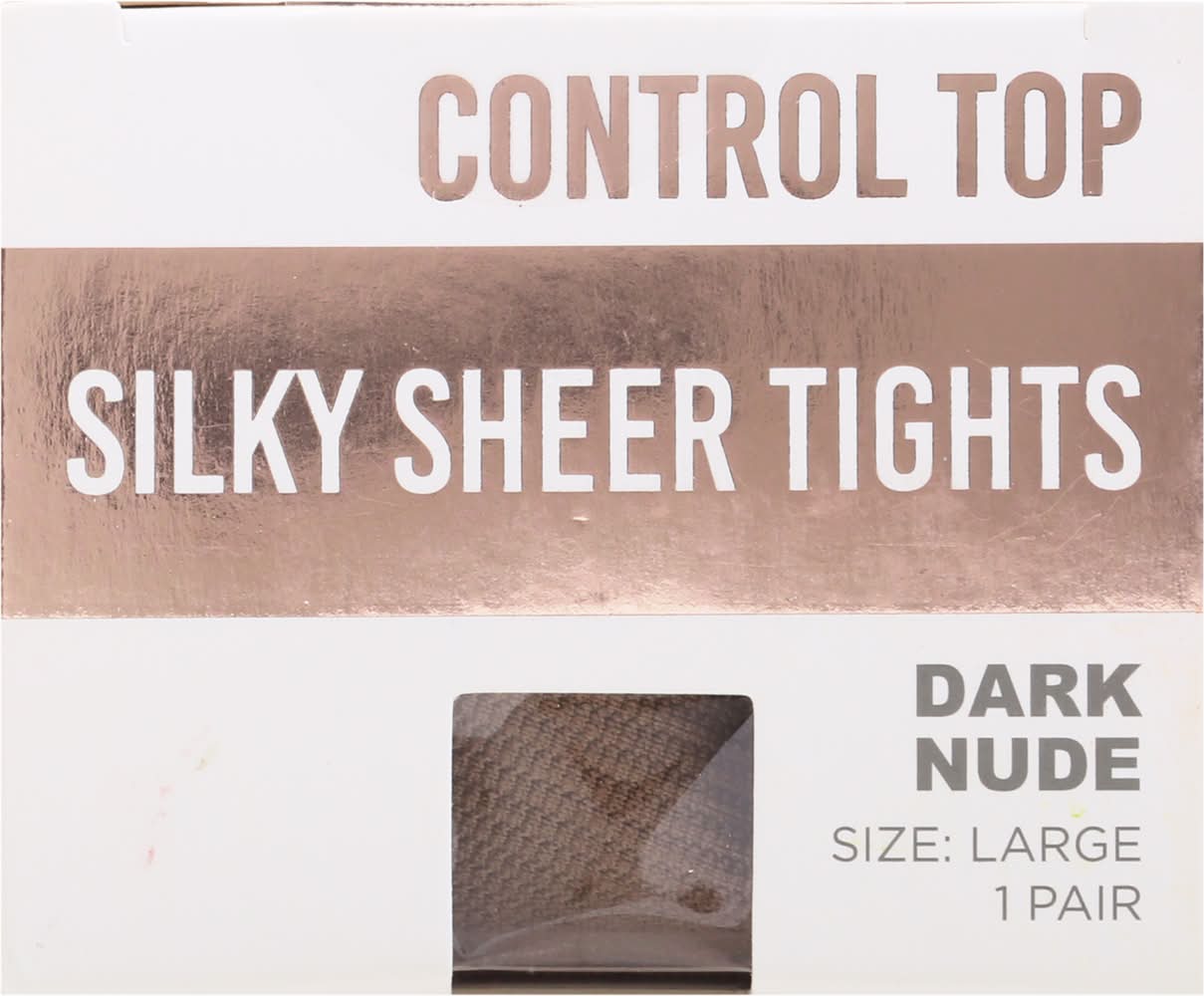 Silky Sheer Tights, Control Top, Dark Nude, Large