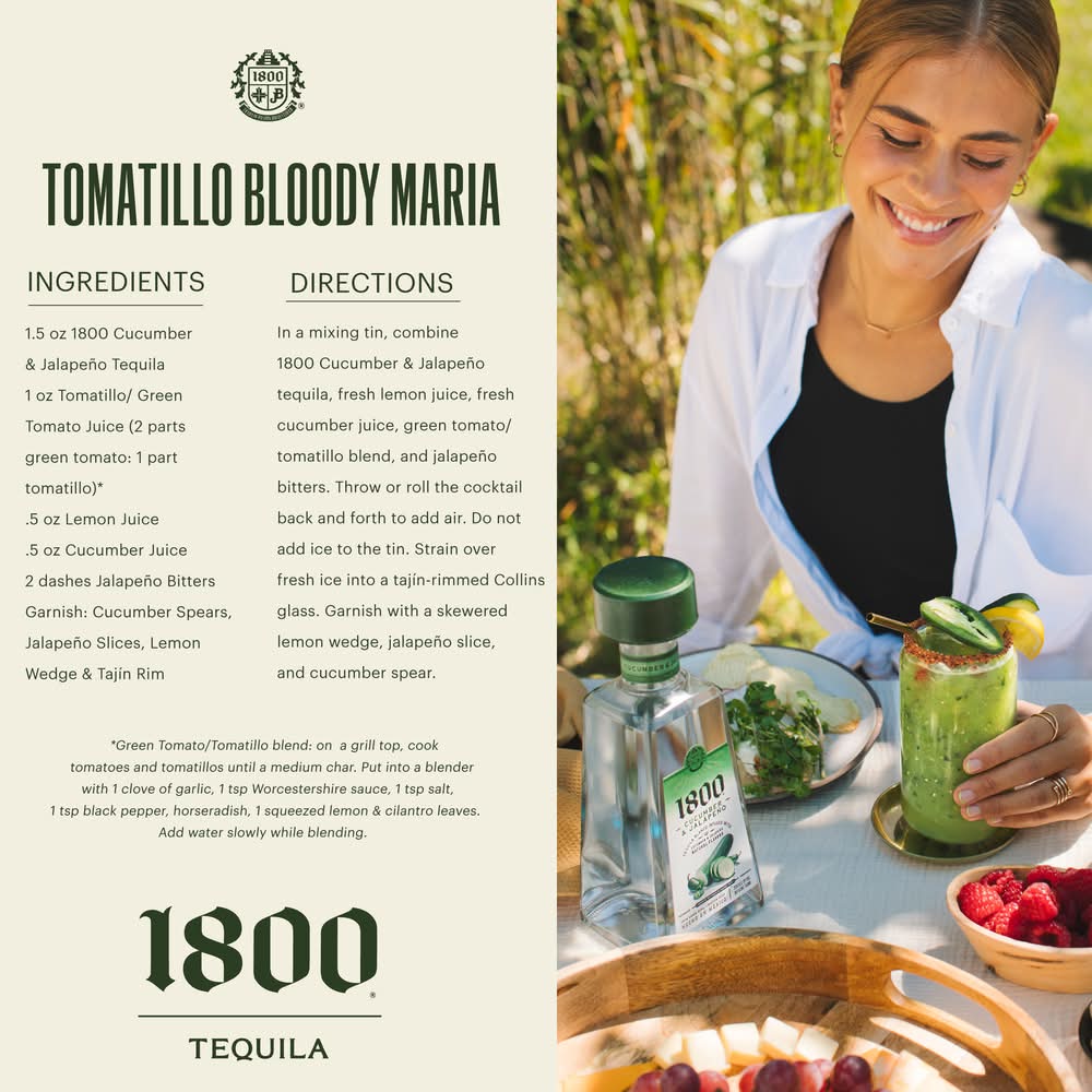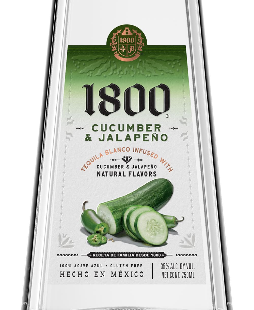 A refreshingly spicy new expression from the #1 selling super-premium tequila and #1 selling flavored tequila brand. 1800 Tequila is 100% blue agave blanco tequila infused with natural flavors of cucumber and jalapeños. A refreshing spicy sensory experience from its herbal, fruity, sweet and spicy aroma to its lingering finish. This unique flavor profile blends fresh cucumber essences with sweet cooked agave and spicy notes of jalapeños. This versatile spirit is best enjoyed in spicy margaritas and in highballs with a simple mix of soda water for a light, refreshing cocktail. Best-selling super-premium tequila, 1800® follows the original formula created in the year 1800. The brand also offers Blanco, Coconut, Reposado, Añejo, Milenio, and Cristalino varietals. This range allows tequila novices and connoisseurs to experience the double-distilled cleanness of blanco, delightful flavored tequilas, and nuanced aged tequilas. • Made from blue agave handpicked in Jalisco, Mexico’s highlands. • 1800's bottles, reminiscent of ancient Mayan stone pyramids, are iconic. • Flavor: Cucumber-jalapeño • Alcohol by volume: 35%