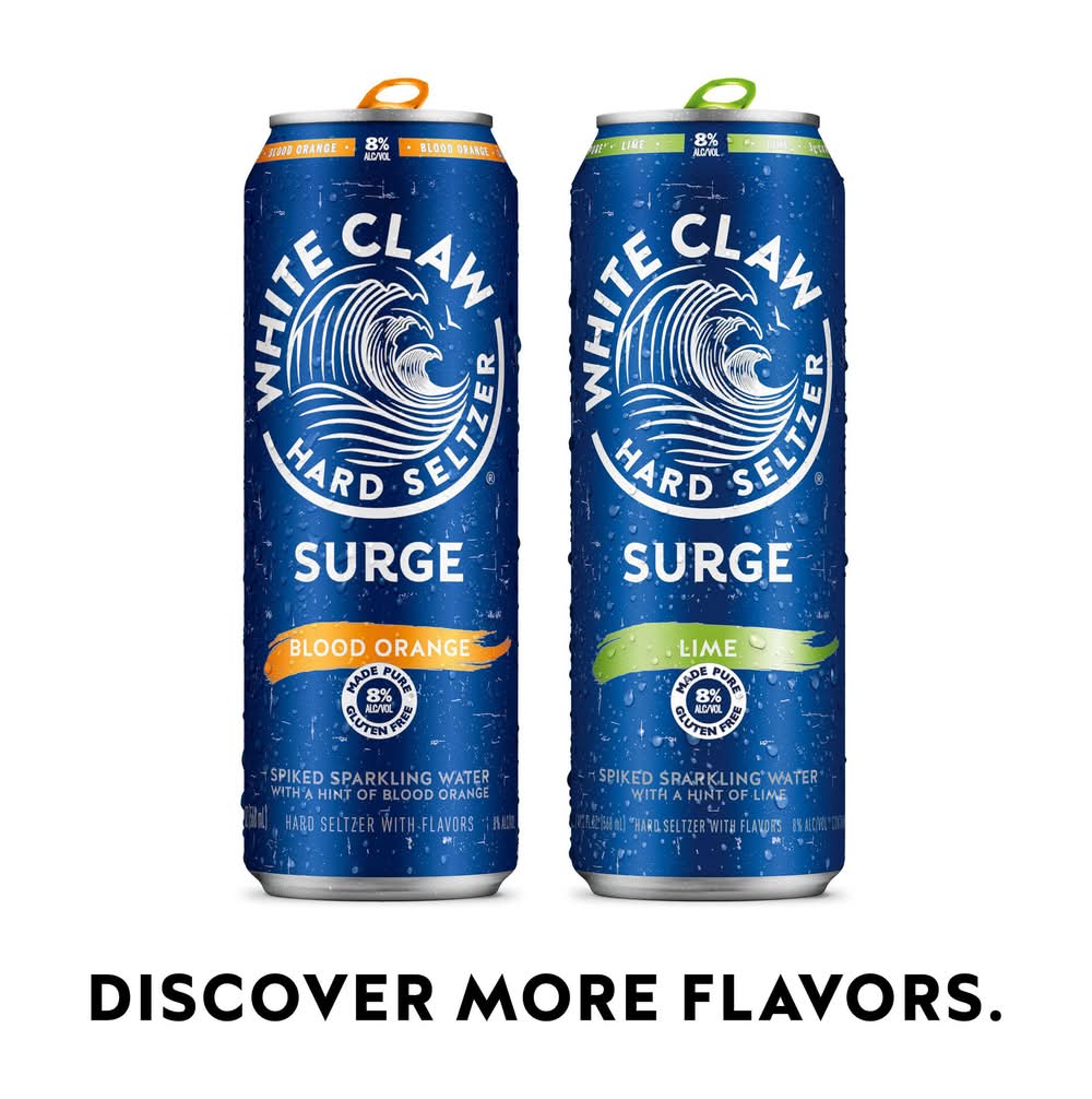 Discovered a stronger wave of taste refreshment with white claw hard seltzer surge blackberry. Crafted with quality ingredients, white claw hard seltzer surge blackberry is made from a blend of seltzer water, and a hint of blackberry. Experience the crisp taste of ripe blackberries with the perfect balance between sweetness and tartness. Every sip is met with a refreshing, zesty citrus aroma. • Features : gluten reduced • Alcohol by volume: 8%