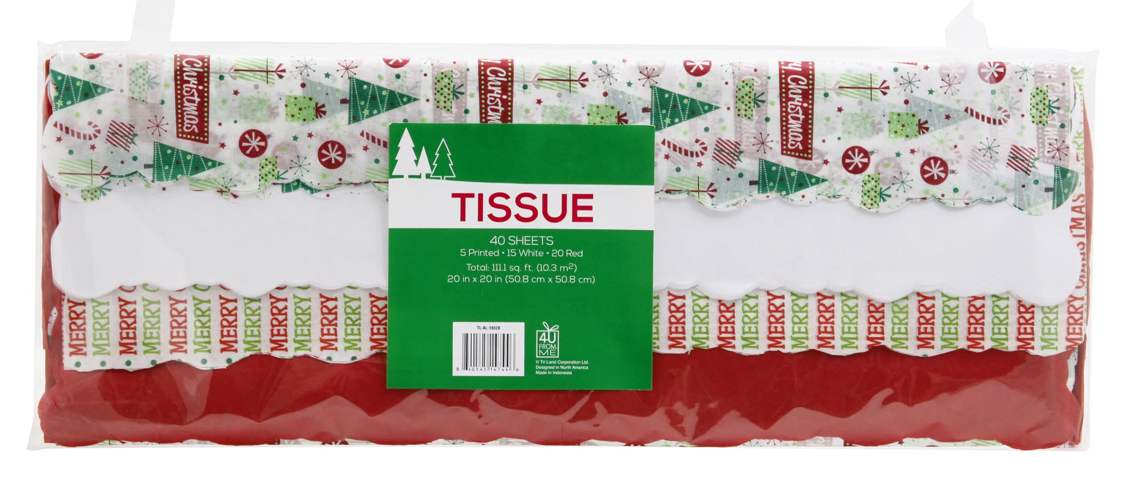 4 U From Me 20" X 20" Christmas Gift Tissue Sheets (10 oz, 40 ct)