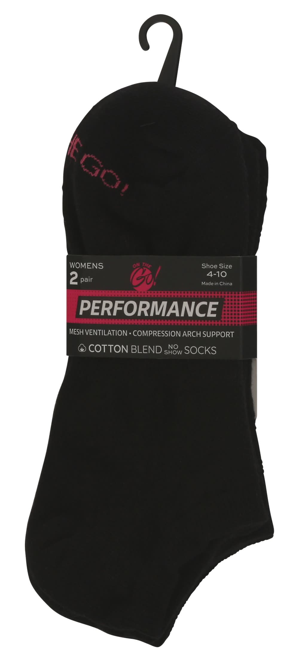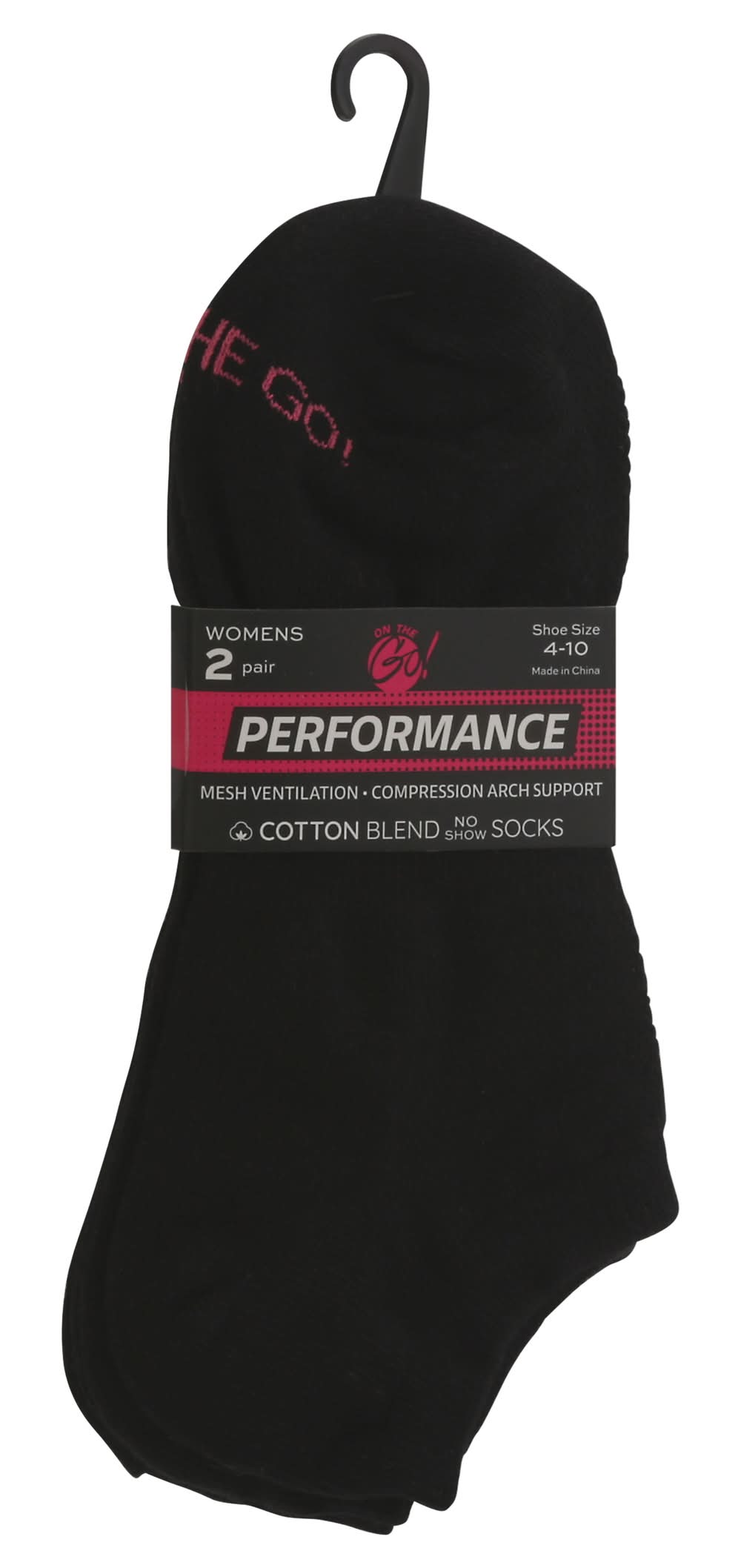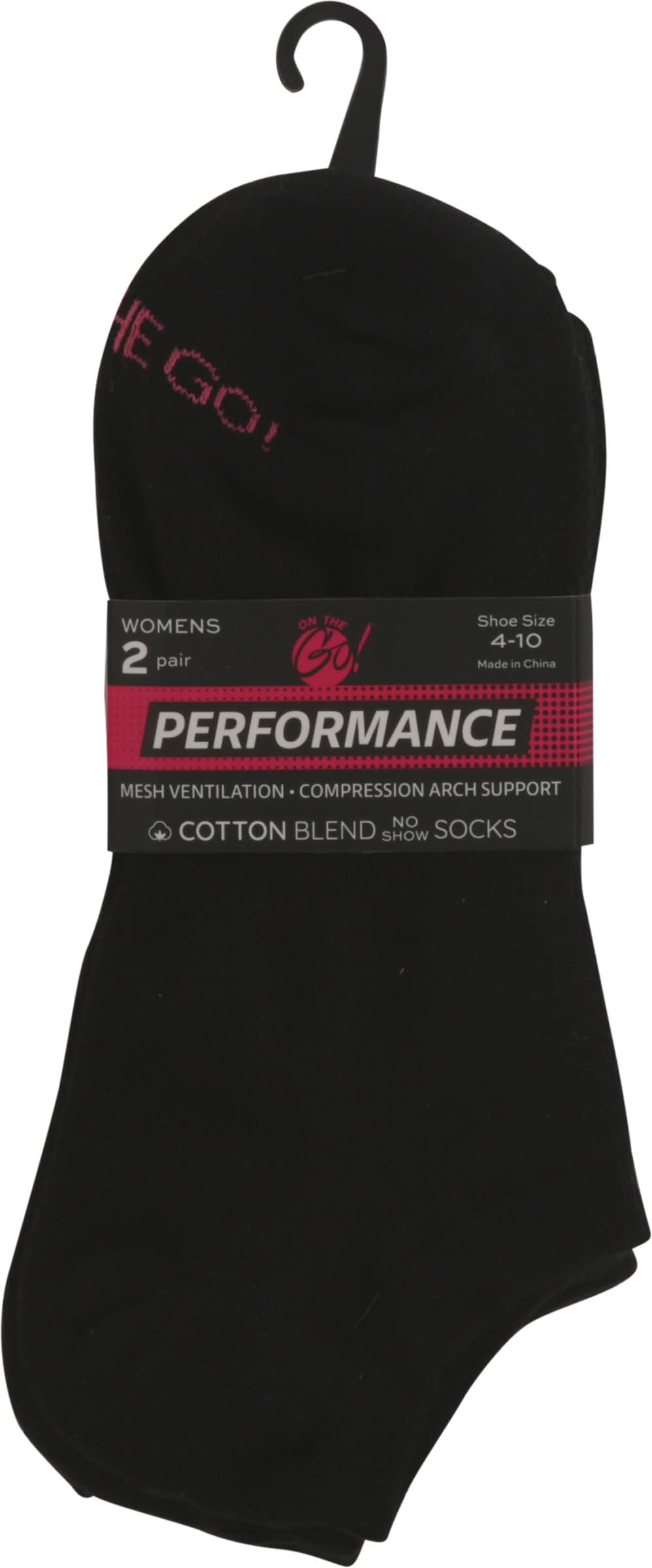On the Go! Cotton Blend Performance Womens Socks, Black (2 ct)