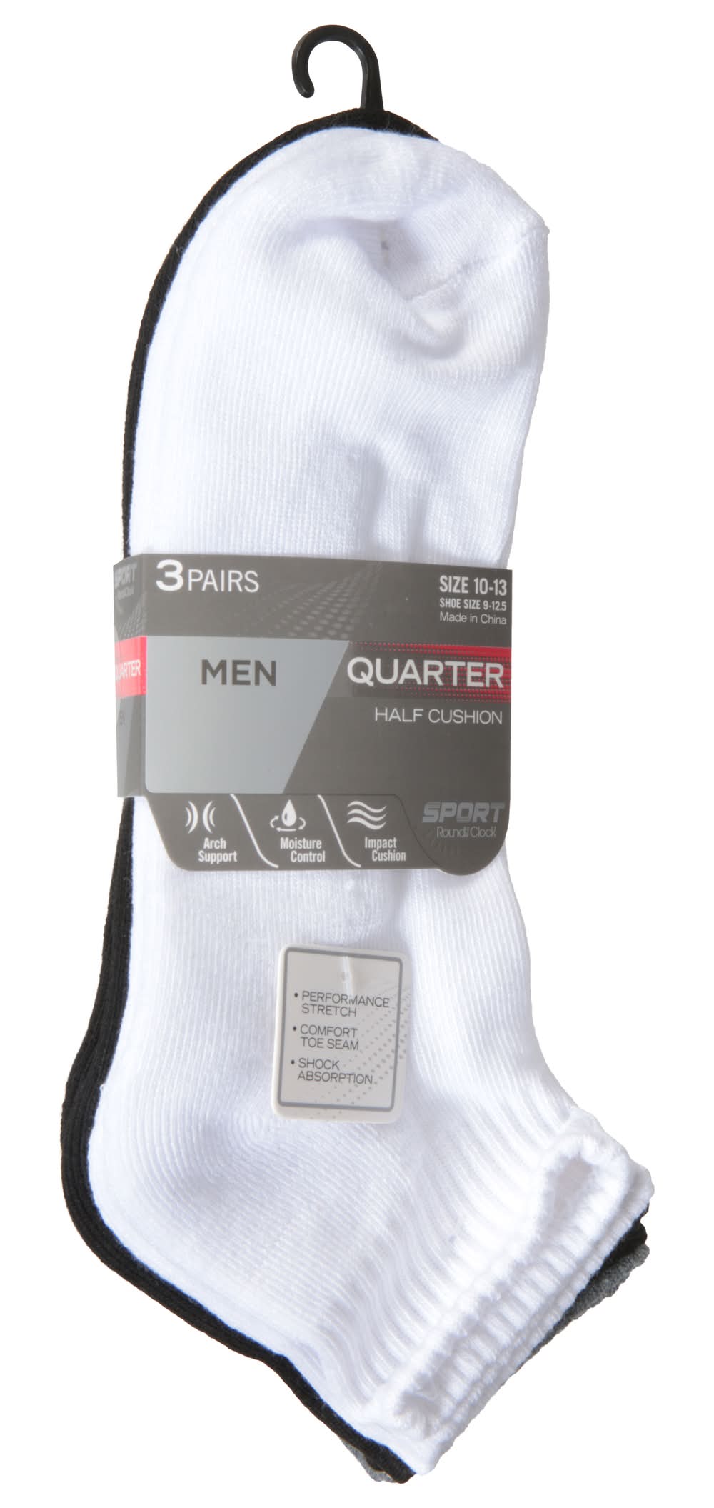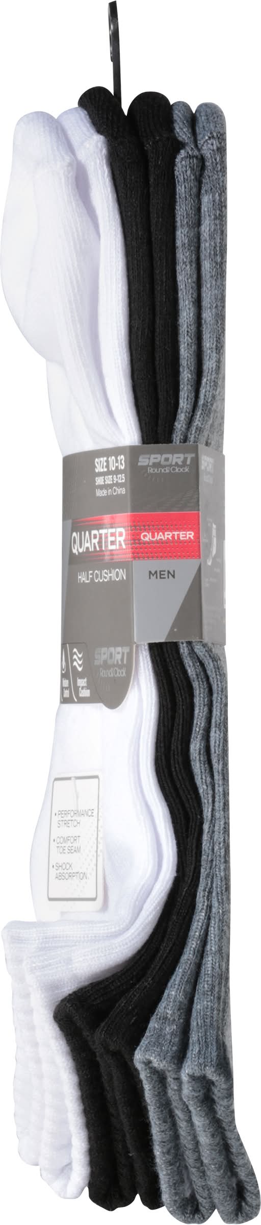 Round the Clock Sport Mens Quarter Socks, 10-13 (6 ct)