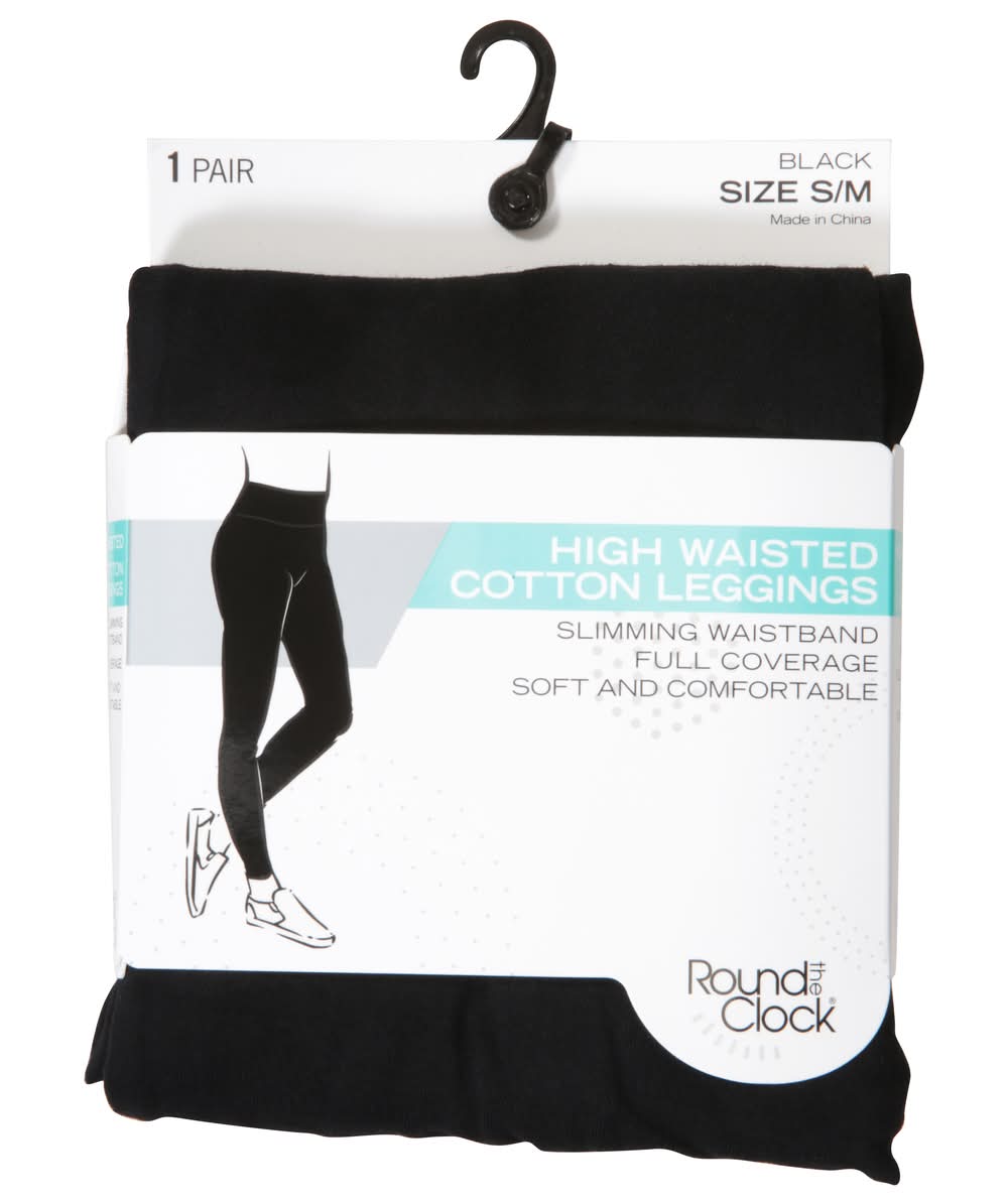 Round the Clock High Waisted Cotton Leggings, S/M, Black