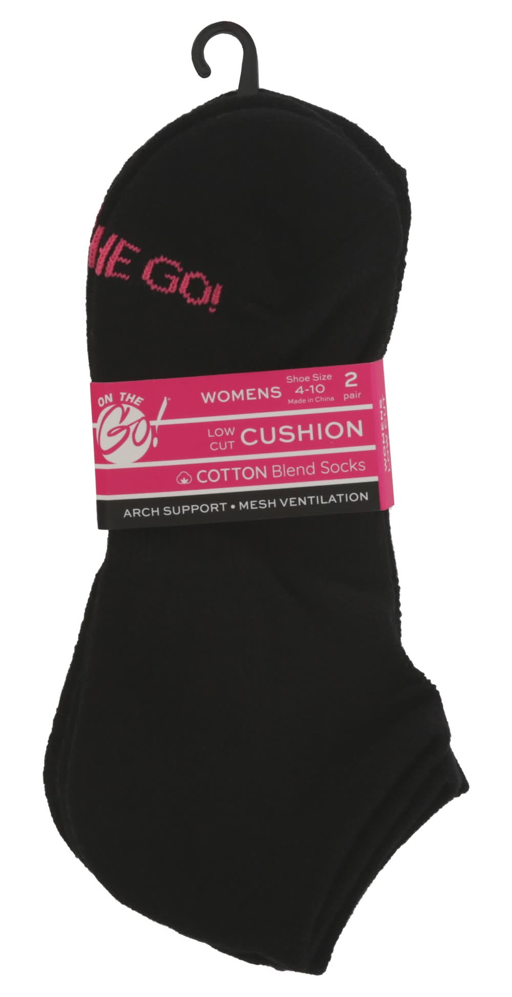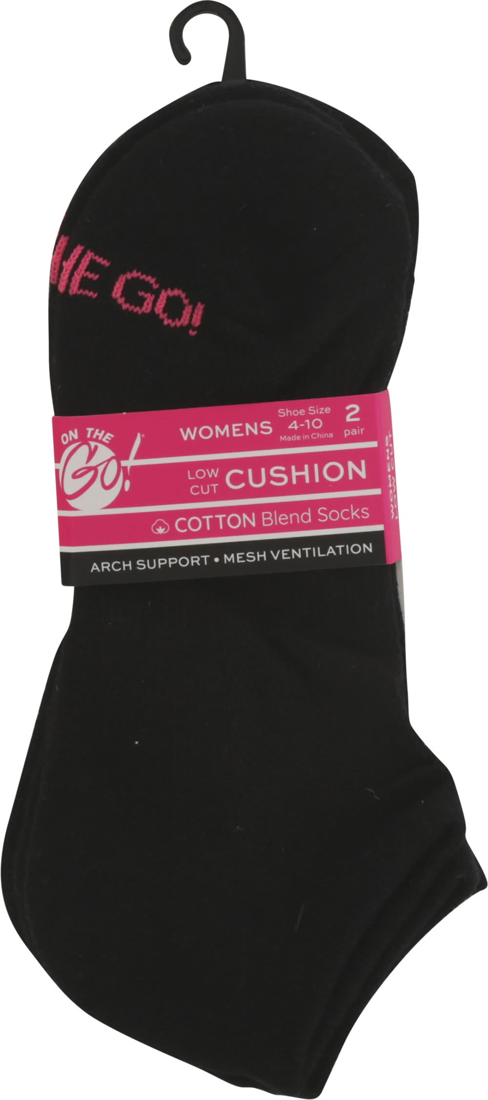 On the Go! Women's Cushion Cotton Blend Socks, Black (2 ct)