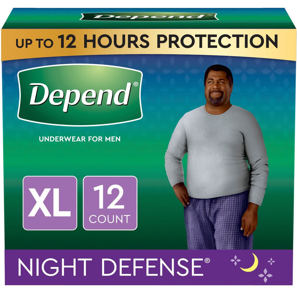 Depend Night Defense Adult Incontinence Underwear for Men, Overnight, Size XL, 12 Count