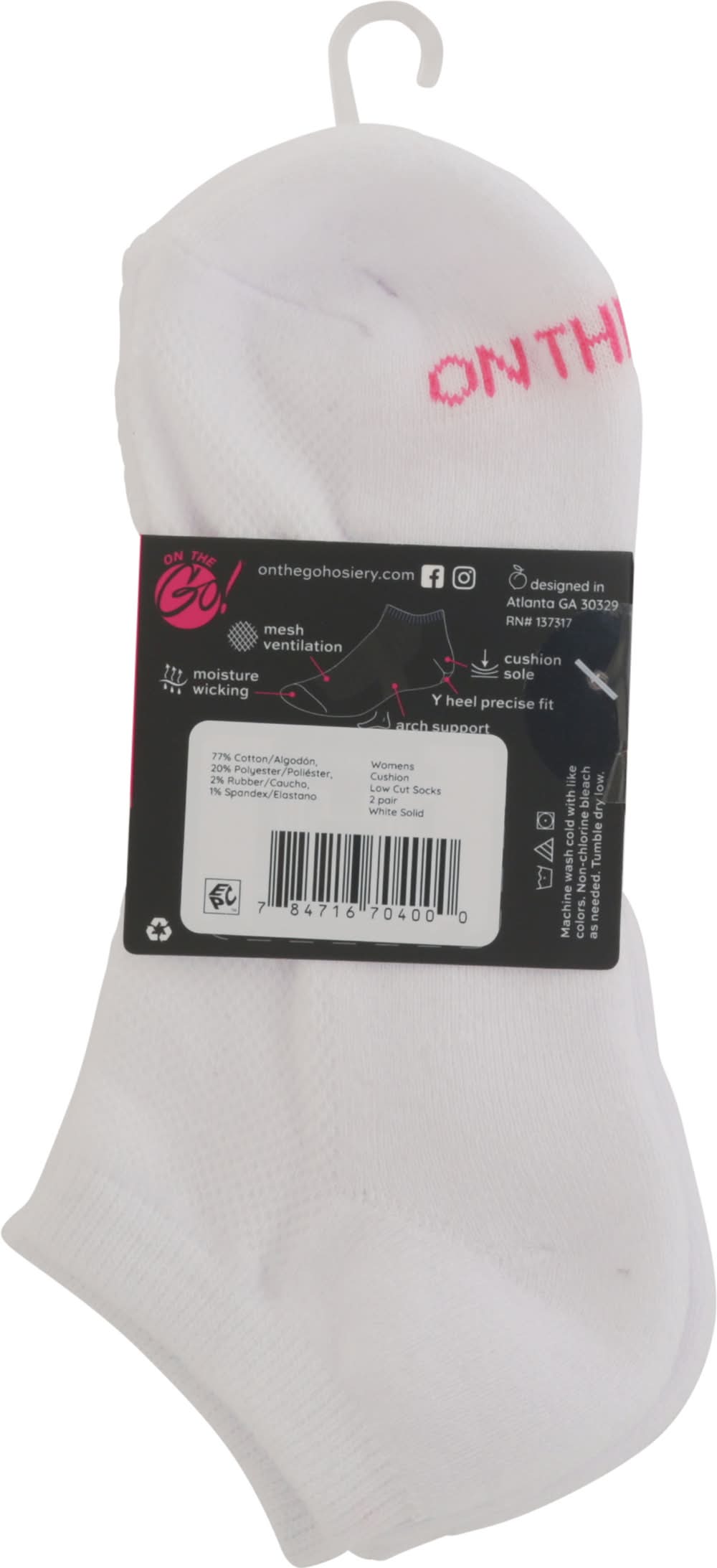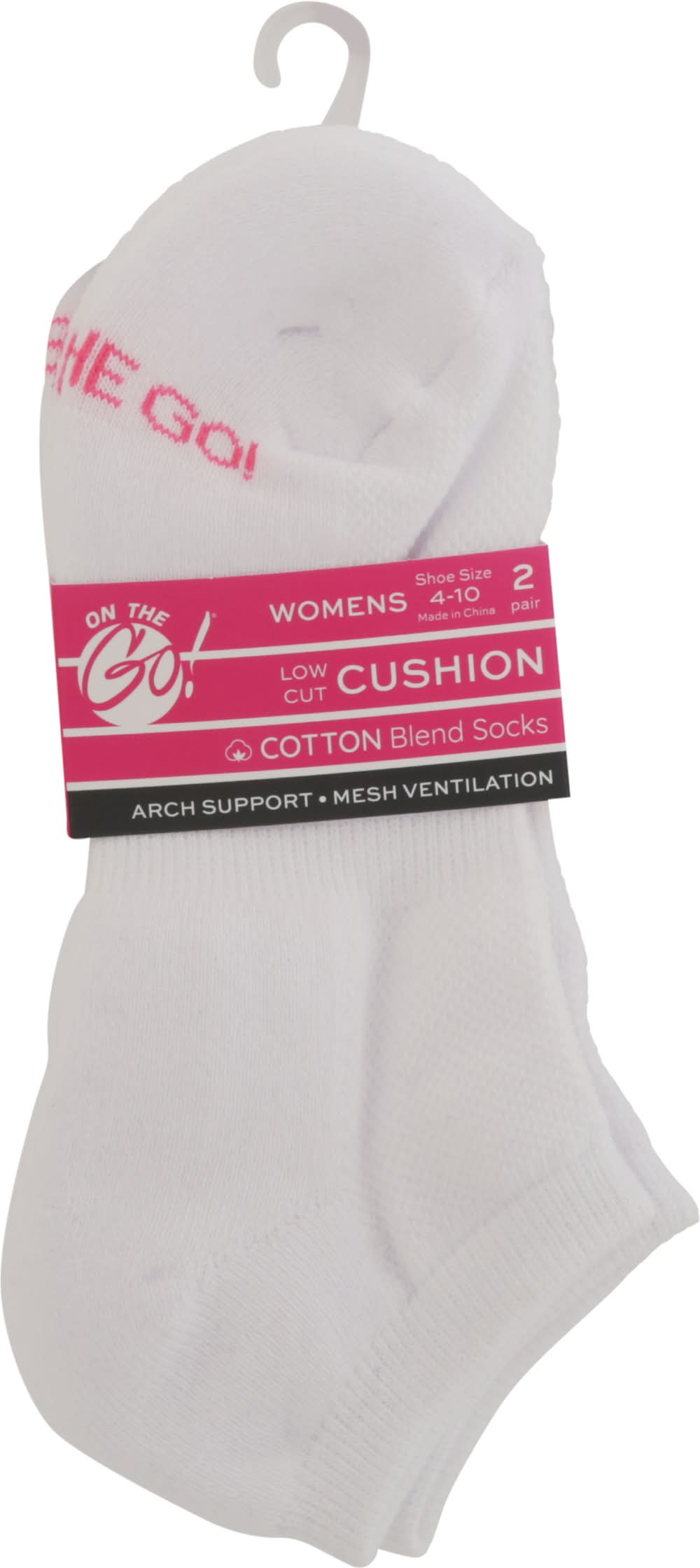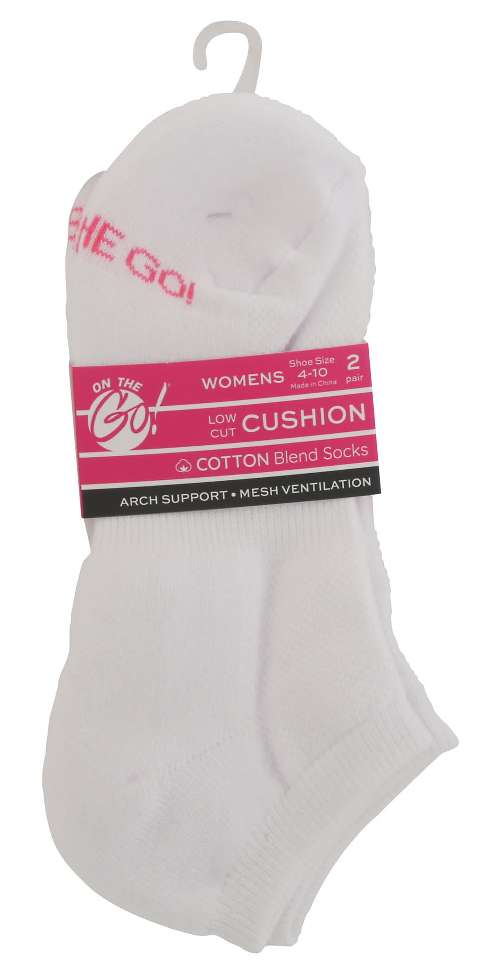 On the Go! Cotton Cushion Low Cut Women's Blend Socks, White Solid (2 ct)