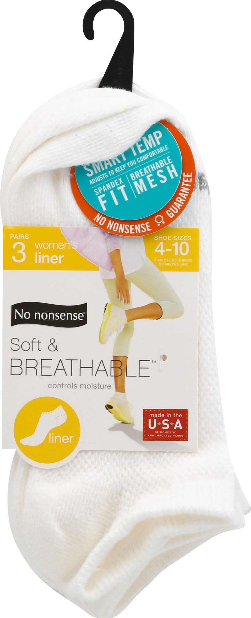 No Nonsense Soft & Breathable Liner Socks Size 4-10
