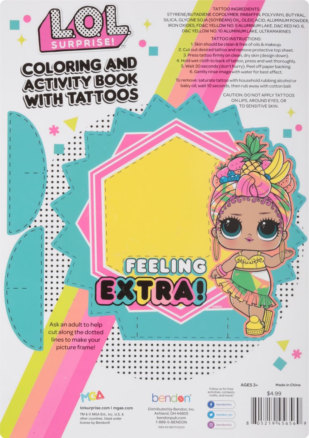 Bendon Coloring and Activity Book With Tattoos