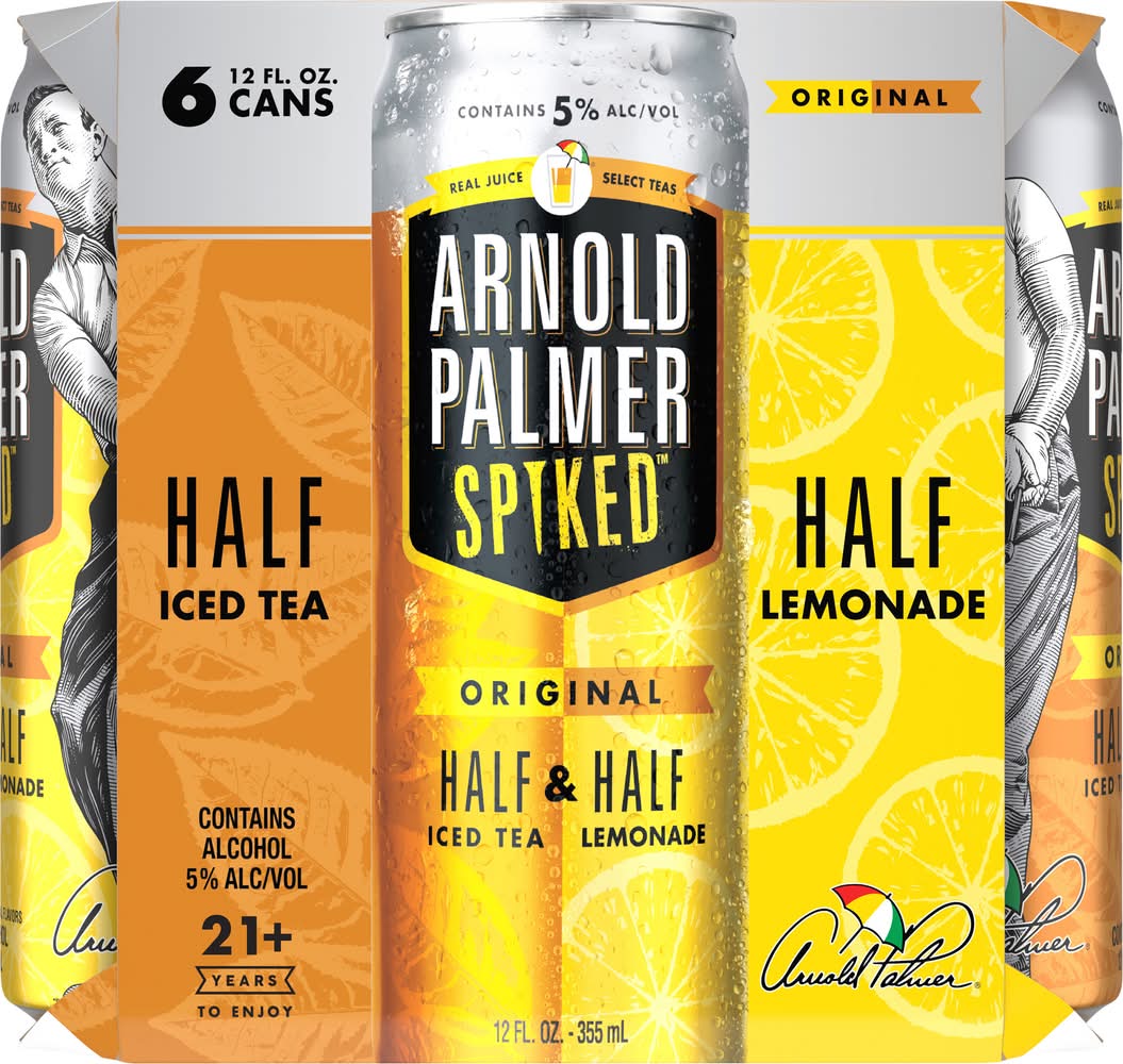 Whether you are in the backyard or on the back nine, Arnold palmer spiked original half & half provides the perfect combination of hard iced tea and hard lemonade for a refreshingly delicious drink experience. Arnold palmer half & half is a non-carbonated, refreshing beverage blend with just the right balance of subtle sweetness and crisp tanginess and abv. Made with real brewed tea and real squeezed juice, this Arnold palmer spiked tea and lemonade creation pays homage to the legendary golfer's classic go-to beverage. • Pack size: 6 • Alcohol by volume: 5% • Hornell Brewing Co., The Arnold Palmer Company, 1000 Arnold Palmer Way, Latrobe, PA 15650.