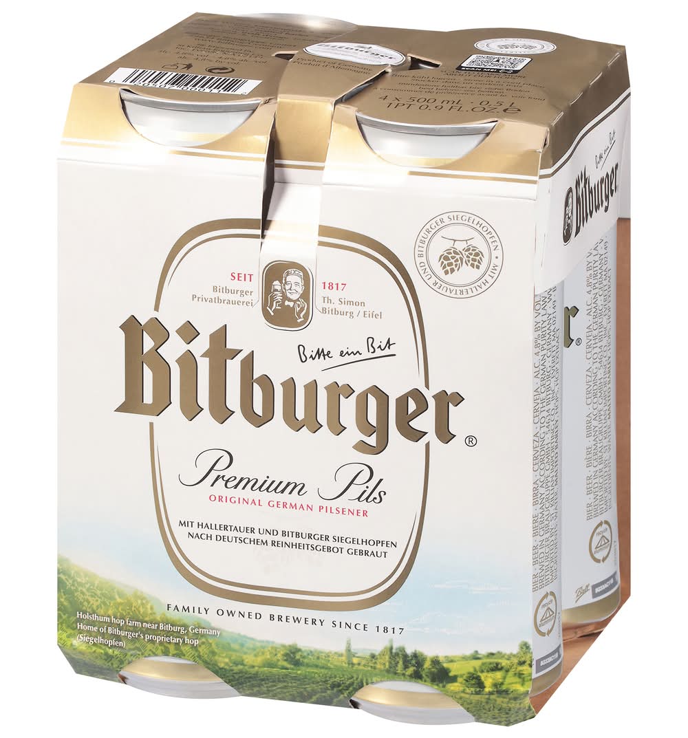 Bitburger Original German Premium Pilsener Draft Beer (4 x 16.9 fl oz)