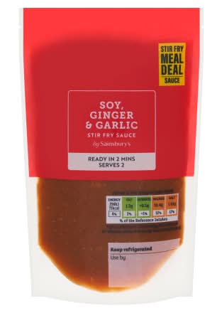 For a quick and easy stir fry dinner, cook your protein of choice. Fry your chosen veg pack as per instructions then add your noodles. Finish off by stirring in our delicious soy, ginger & garlic sauce and serve once piping hot. Sainsbury's Supermarkets Ltd., 33 Holborn, London EC1N 2HT