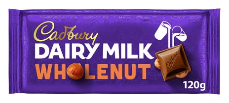Cadbury Wholenut, Dairy Milk Chocolate Bar (120g)