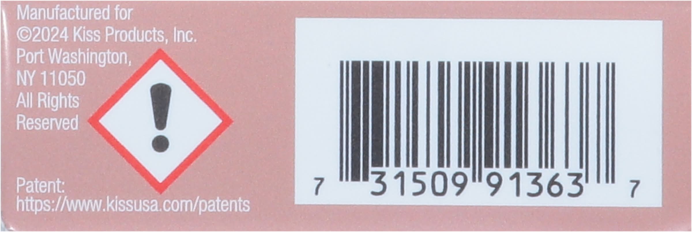Prep: clean nails with polish remover and wash hands thoroughly with soap; select correct size nail for each finger and set aside in order. nails are sized by number, noted underneath nail. application: 1. apply glue to back of artificial nail. 2. apply glue to natural nail. 3. align with cuticle, gently press on & hold for 5 seconds. expert tip: apply enough glue to avoid air pockets, secure adhesion and extend wear. removal: trim & file surface to disrupt protective top coat. apply kiss glue off remover between artificial and natural nails or soak nails in acetone polish remover until soft. wipe off softened nails & glue. do not force or pull nails off. - directions: prep: clean nails with polish remover and wash hands thoroughly with soap; select correct size nail for each finger and set aside in order. nails are sized by number, noted underneath nail. application: 1. apply glue to back of artificial nail. 2. apply glue to natural nail. 3. align with cuticle, gently press on & hold for 5 seconds. expert tip: apply enough glue to avoid air pockets, secure adhesion and extend wear. removal: trim & file surface to disrupt protective top coat. apply kiss glue off remover between artificial and natural nails or soak nails in acetone polish remover until soft. wipe off softened nails & glue. do not force or pull nails off. good for 6 months once opened.
