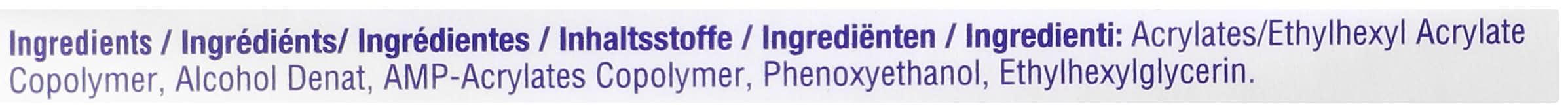 Ingredients: Acrylates/Ethylhexyl Acrylate Copolymer, Alcohol Denat, AMP-Acrylates Copolymer, Phenoxyethanol, Ethylhexylglycerin