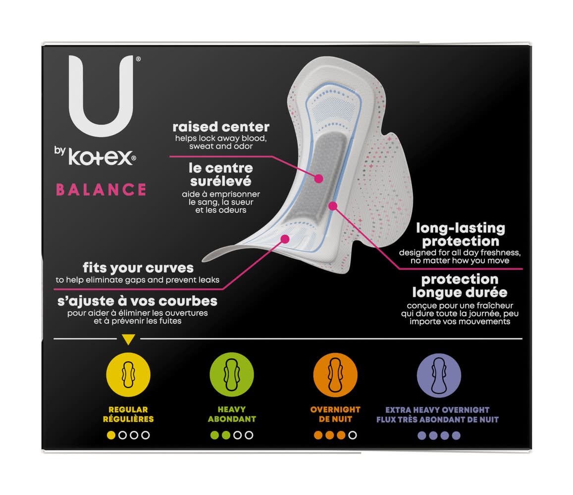 U by Kotex Balance Ultra Thin Pads with Wings, Regular Absorbency, 18 Count Packaging: Reusable