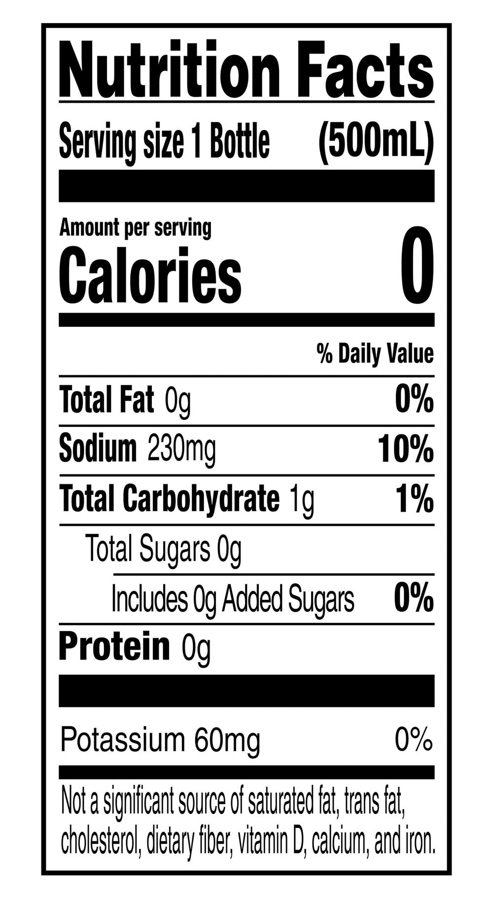 Ingredients: Water, Citric Acid, Sodium Citrate, Salt, Monopotassium Phosphate, Modified Food Starch, Natural Flavor, Sucralose, Acesulfame Potassium, Glycerol Ester Of Rosin, Blue 1